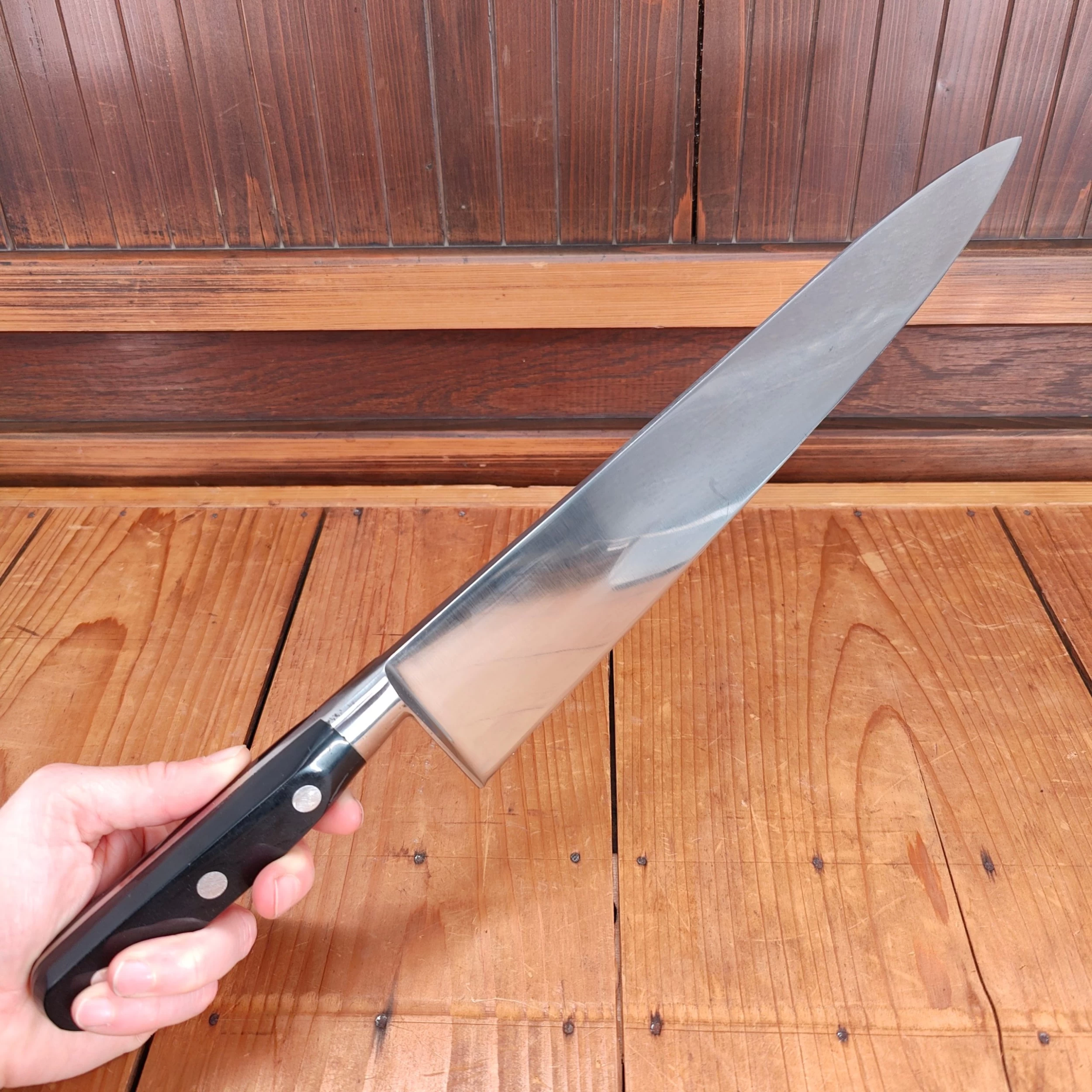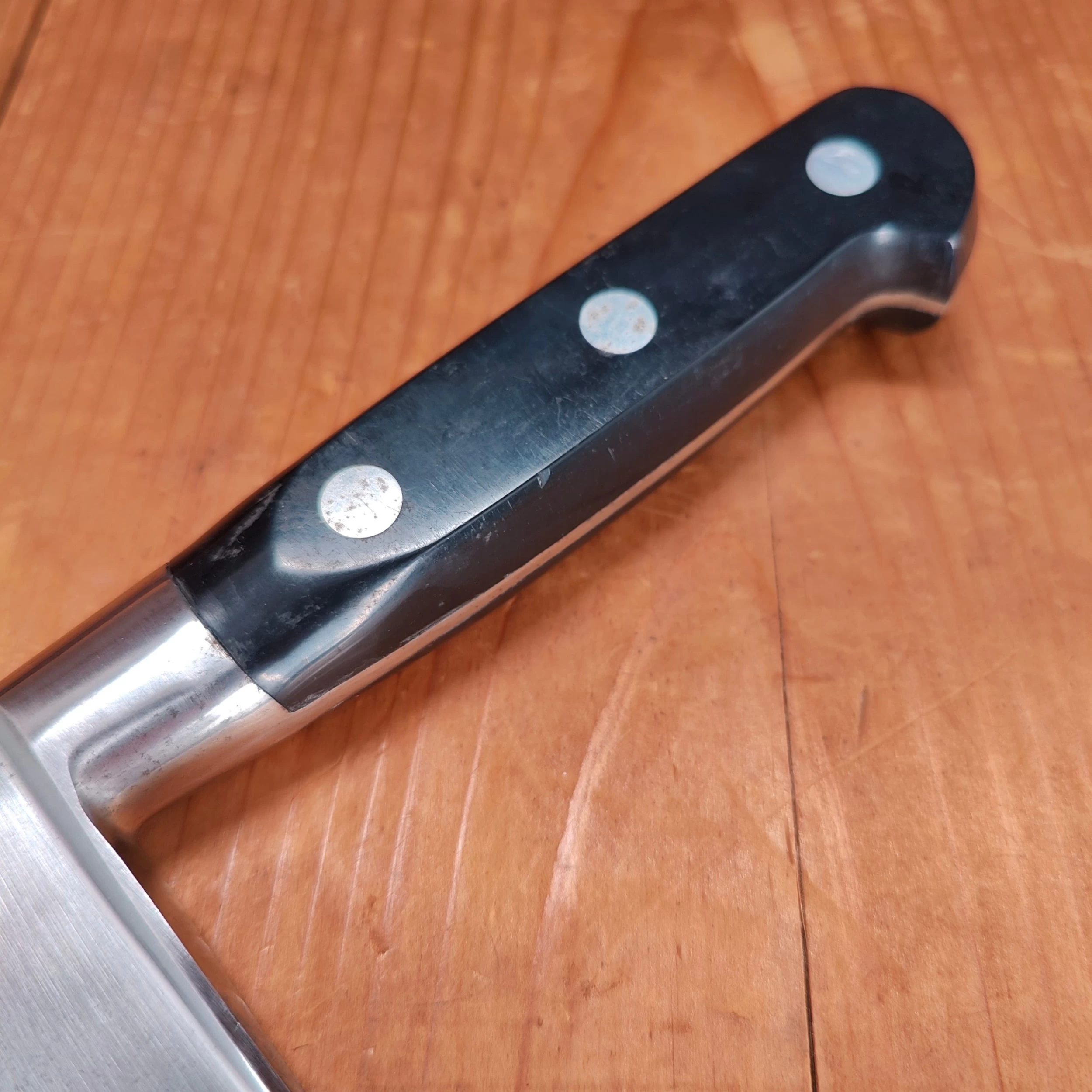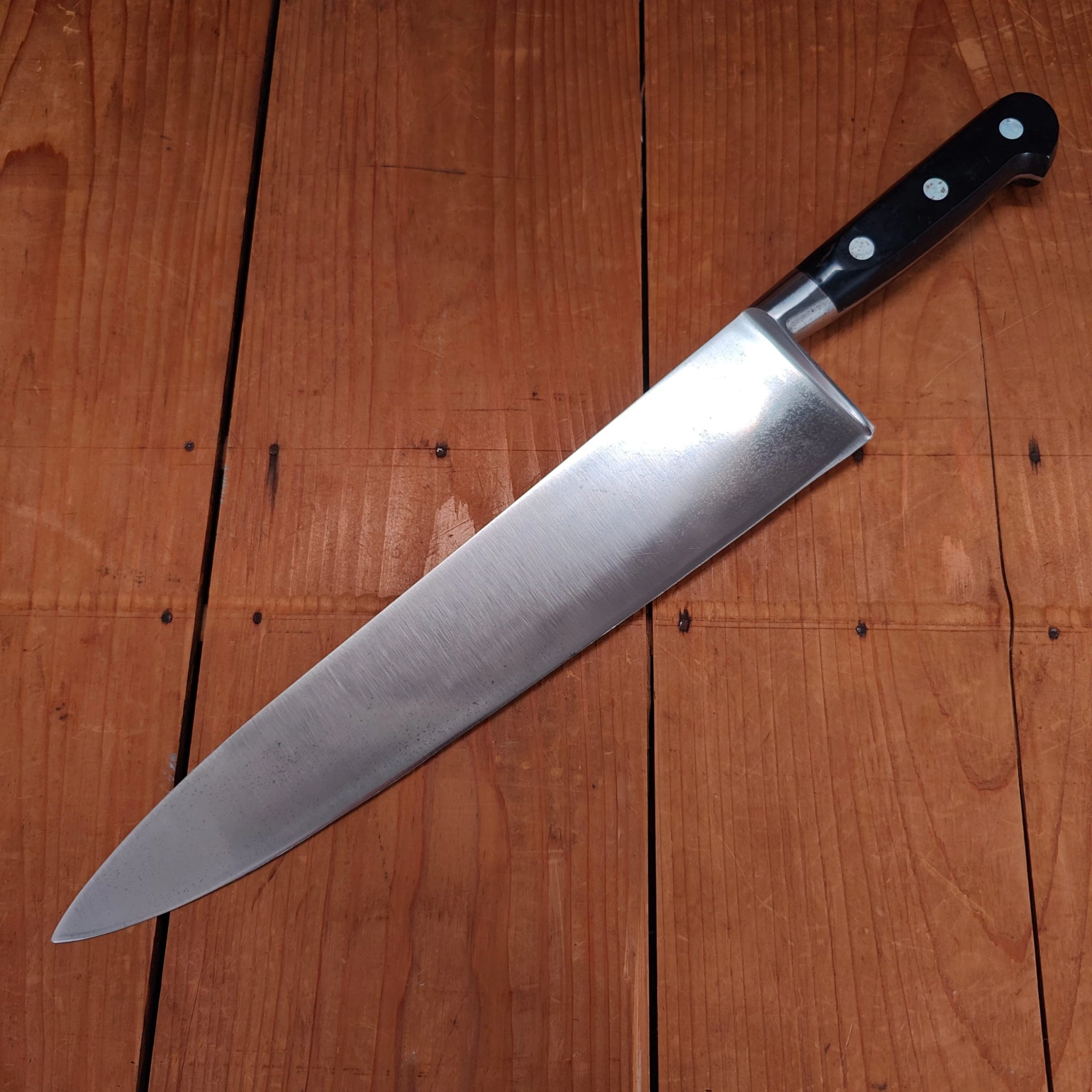 New old stock unmarked 30cm / 11.75″ carbon steel chef knives from the vintage vault! These knives are unmarked, so dating is a little difficult, but they were most likely made in the the 1960’s to 90’s.