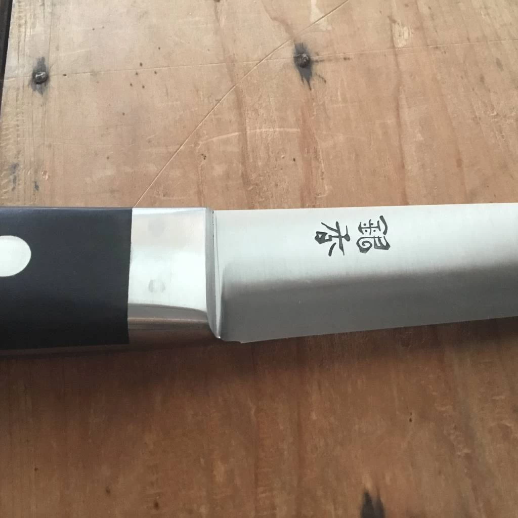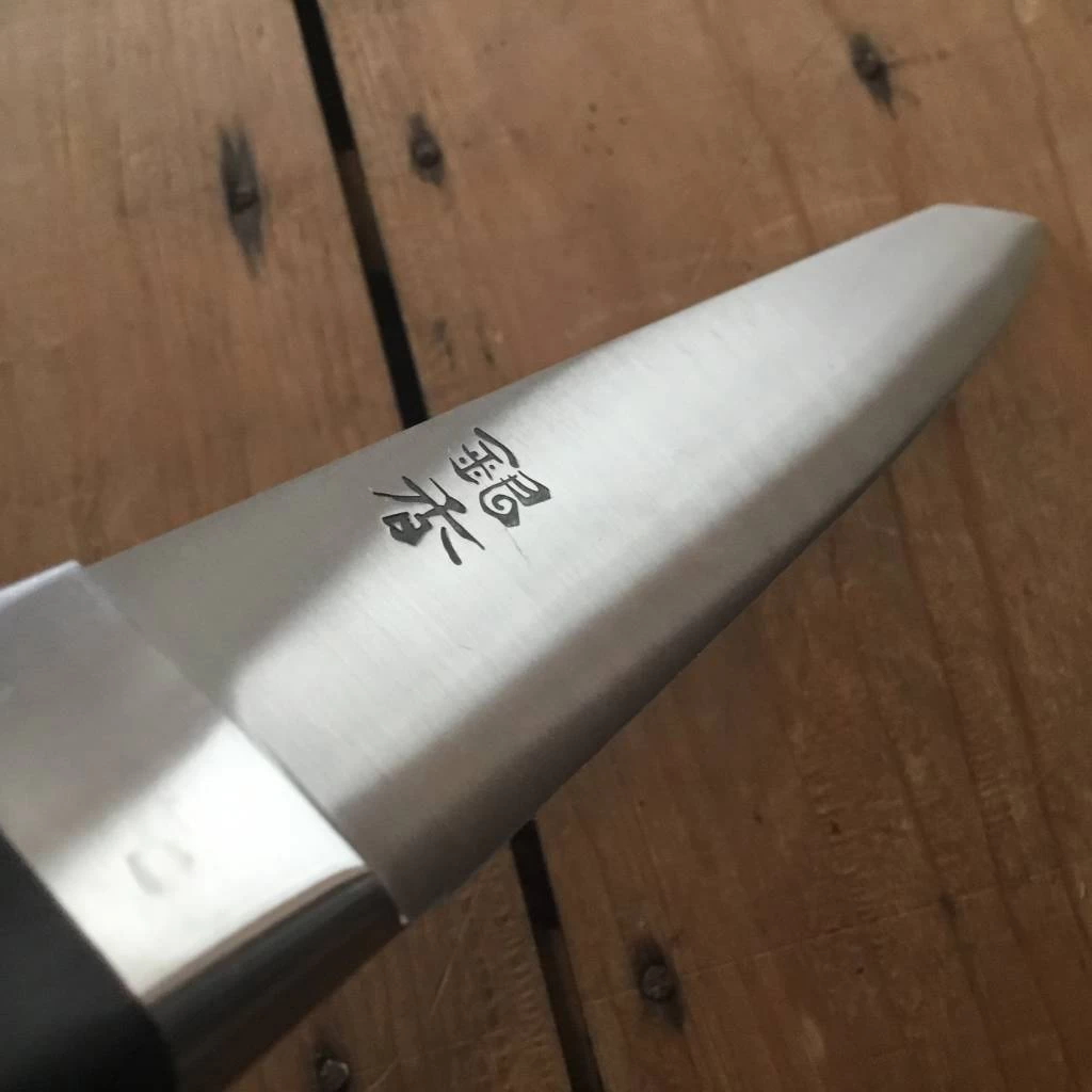 Ashi Hamono was established in 1948 in Sakai City Japan; a major center of traditional knife making. Ashi makes knives utilizing a one piece of steel (rather than forge laminated 2/3 layer blade), called zenkou construction. Ashi’s Ginga line is famous for it’s thinness and precision, utilizing top quality carbon and stainless steels. These knives have an excellent fit and finish, from their grinding to heat treatment and hafting.