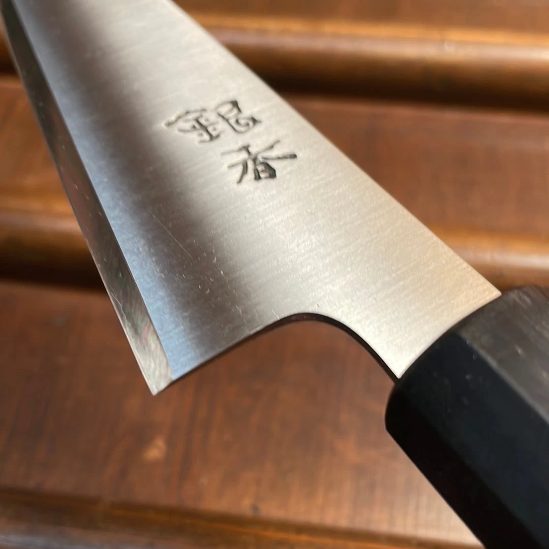 Ashi Hamono was established in 1948 in Sakai City Japan; a major center of traditional knife making. Ashi makes knives utilizing a one piece of steel (rather than forge laminated 2/3 layer blade), called zenkou construction. Ashi’s Ginga line is famous for it’s thinness and precision, utilizing top quality carbon and stainless steels. These knives have an excellent fit and finish, from their grinding to heat treatment and hafting.