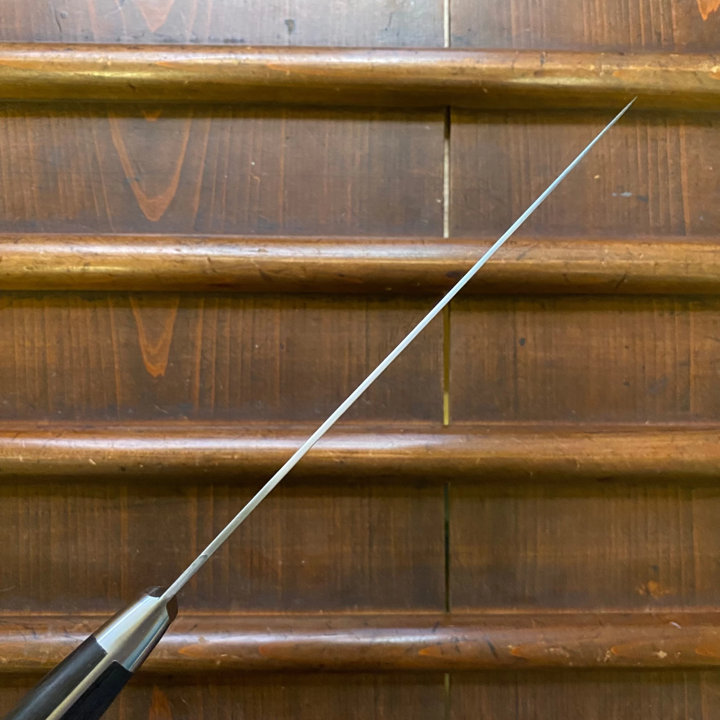 Ashi Hamono was established in 1948 in Sakai City Japan; a major center of traditional knife making. Ashi makes knives utilizing a one piece of steel (rather than forge laminated 2/3 layer blade), called zenkou construction. Ashi’s Ginga line is famous for it’s thinness and precision, utilizing top quality carbon and stainless steels. These knives have an excellent fit and finish, from their grinding to heat treatment and hafting.