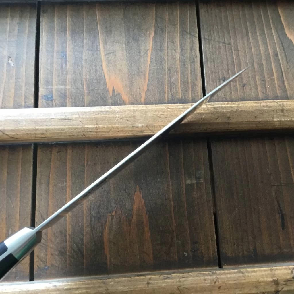 Ashi Hamono was established in 1948 in Sakai City Japan; a major center of traditional knife making. Ashi makes knives utilizing a one piece of steel (rather than forge laminated 2/3 layer blade), called zenkou construction. Ashi’s Ginga line is famous for it’s thinness and precision, utilizing top quality carbon and stainless steels. These knives have an excellent fit and finish, from their grinding to heat treatment and hafting.