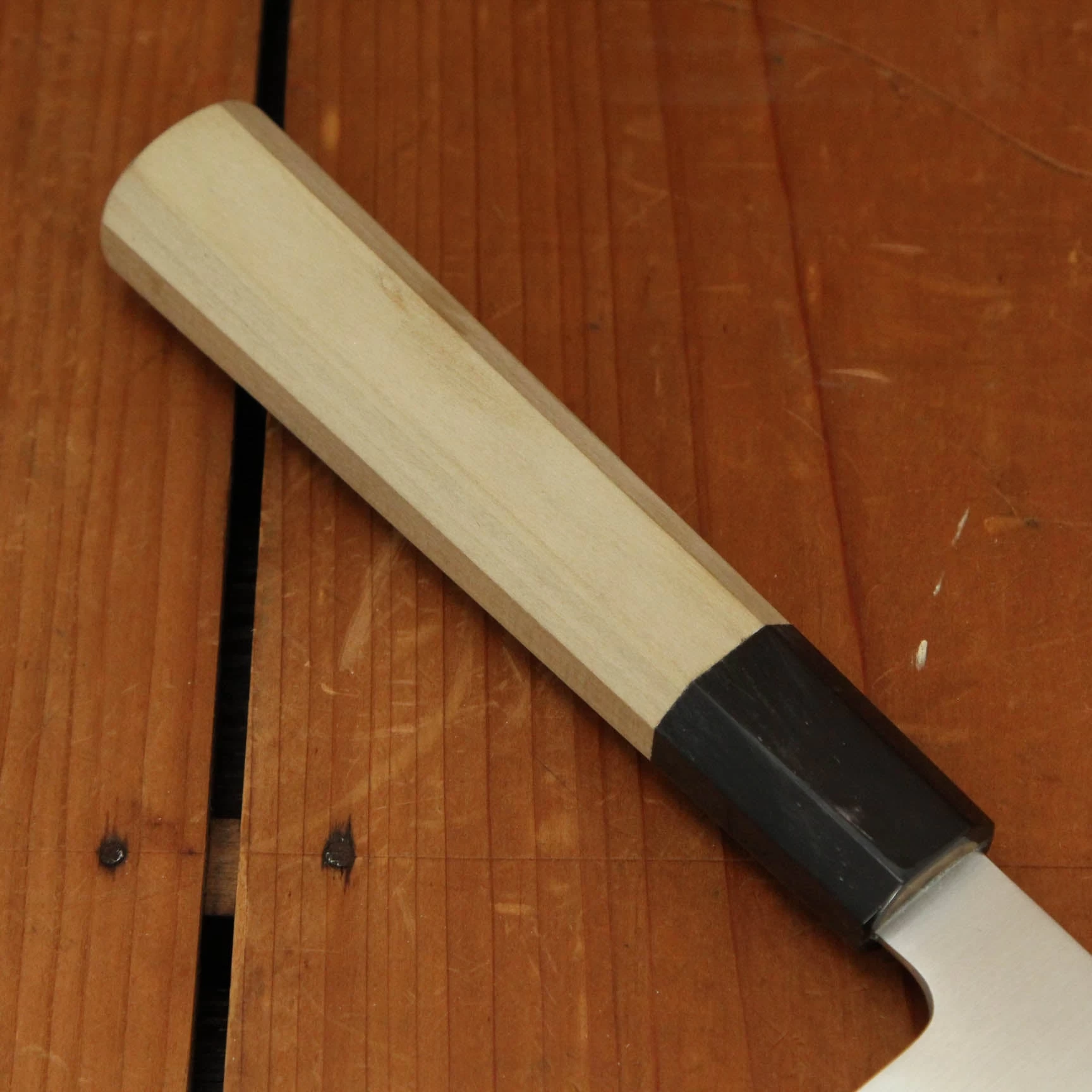 Ashi Hamono was established in 1948 in Sakai City Japan; a major center of traditional knife making. Ashi makes knives utilizing a one piece of steel (rather than forge laminated 2/3 layer blade), called zenkou construction. Ashi’s Ginga line is famous for it’s thinness and precision, utilizing top quality carbon and stainless steels. These knives have an excellent fit and finish, from their grinding to heat treatment and hafting.
