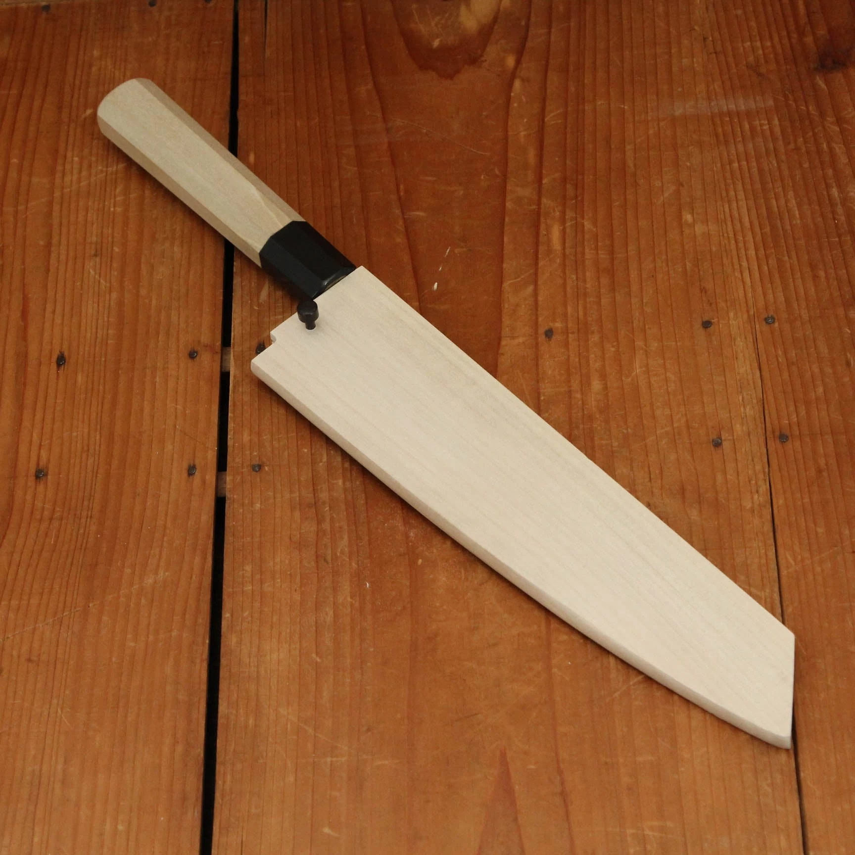 Ashi Hamono 240mm kiritsuke gyuto chef knife with Swedish stainless steel blade. Octagon magnolia wood handle and water buffalo horn ferrule. Saya cover is included.