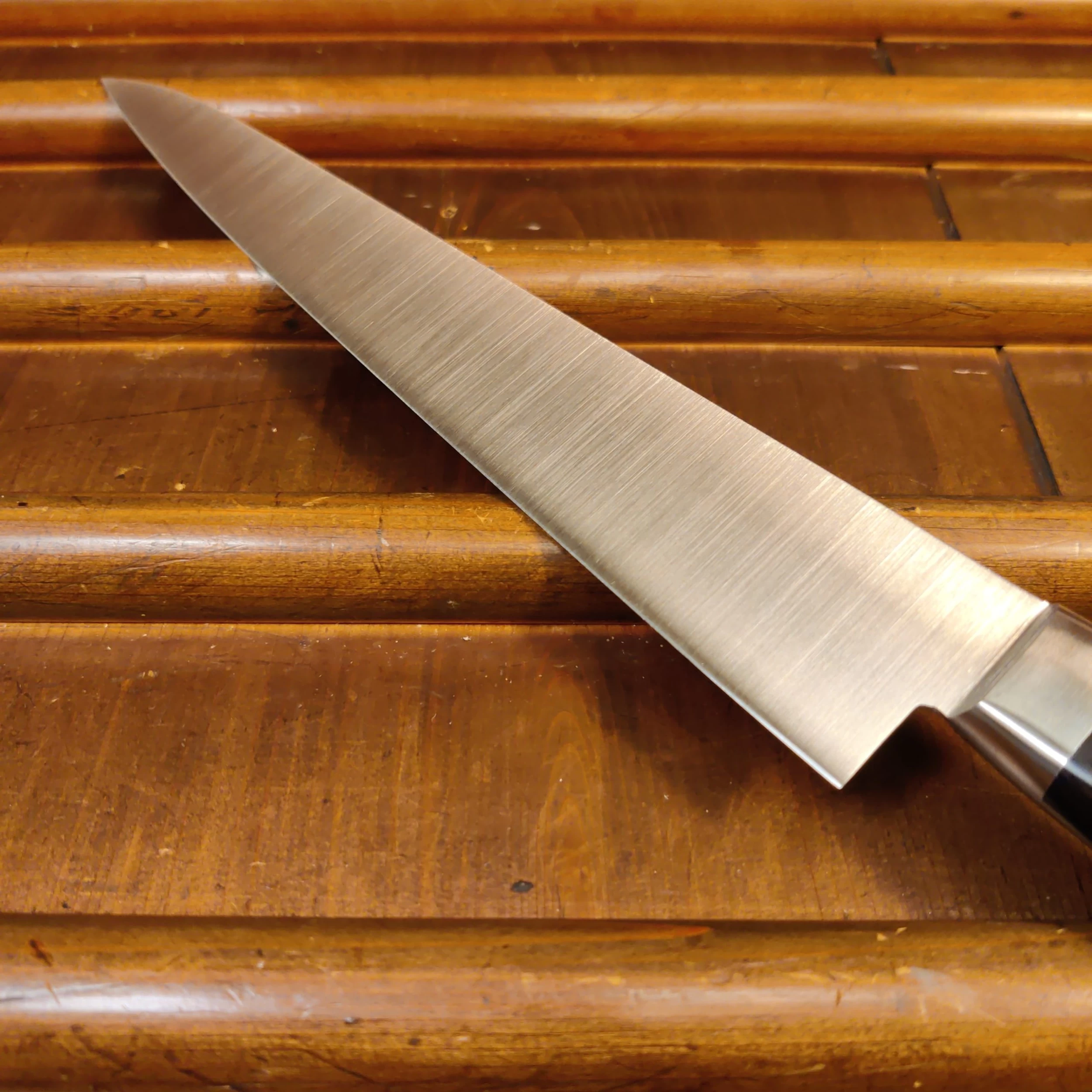 Ashi’s Swedish stainless steel knives are some of the lightest, thinnest and easiest to sharpen knives we have come across. Their cutting feel is excellent due to top quality hand grinding, creating convexity on the side of the knife, and making them extra thin behind the edge. Ideal for a home cook or professional that needs a low maintenance and high performance blade.