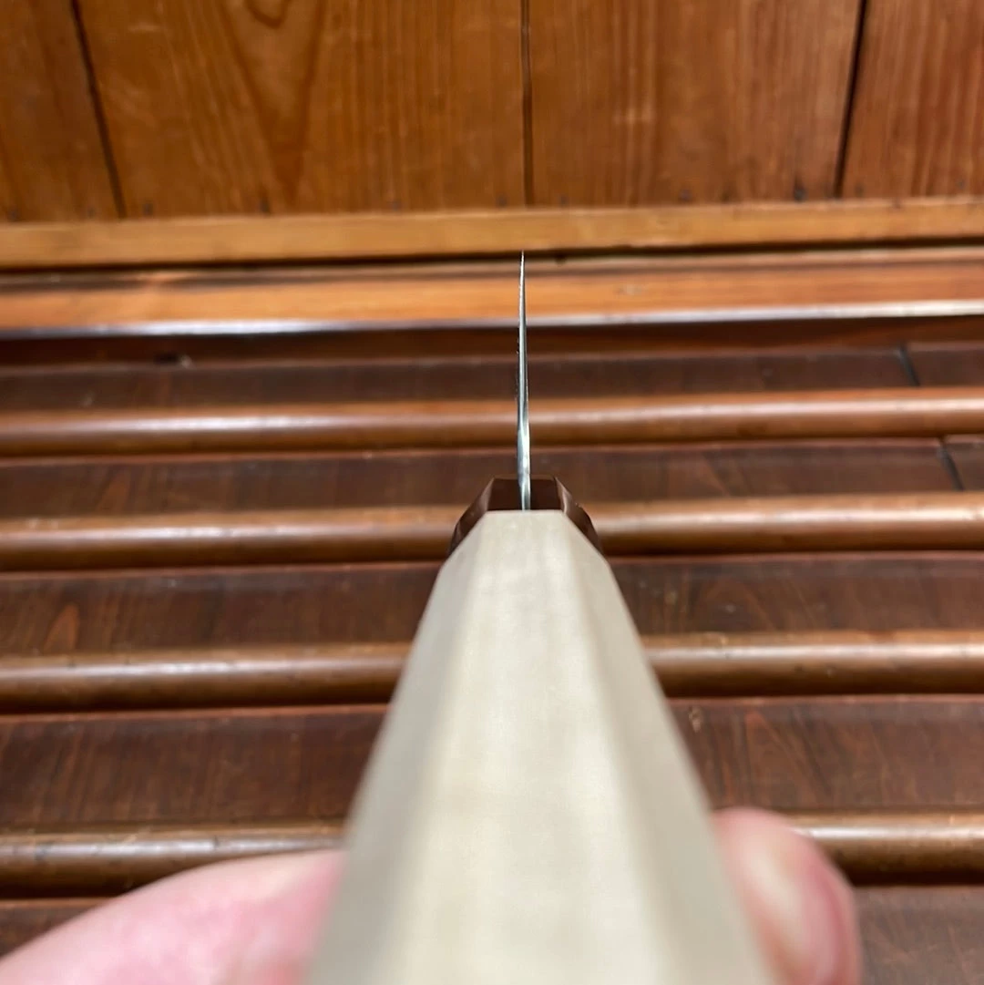 Ashi Hamono was established in 1948 in Sakai City Japan; a major center of traditional knife making. Ashi makes knives utilizing a one piece of steel (rather than forge laminated 2/3 layer blade), called zenkou construction. Ashi’s Ginga line is famous for it’s thinness and precision, utilizing top quality carbon and stainless steels. These knives have an excellent fit and finish, from their grinding to heat treatment and hafting.