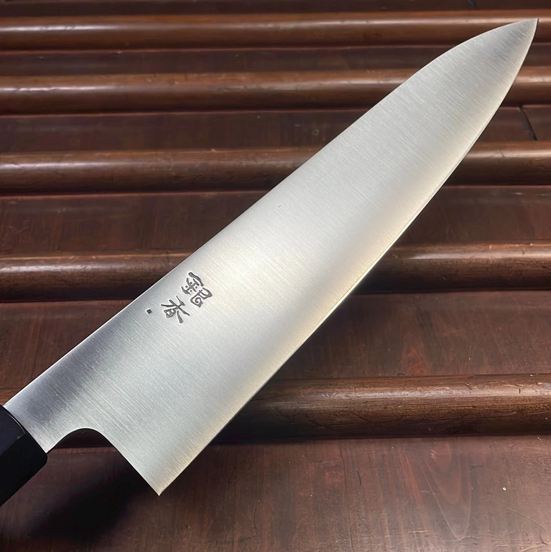 Ashi Hamono 270mm gyuto chef knife with Swedish stainless steel blade. Octagon magnolia wood handle and water buffalo horn ferrule. Saya cover is included.