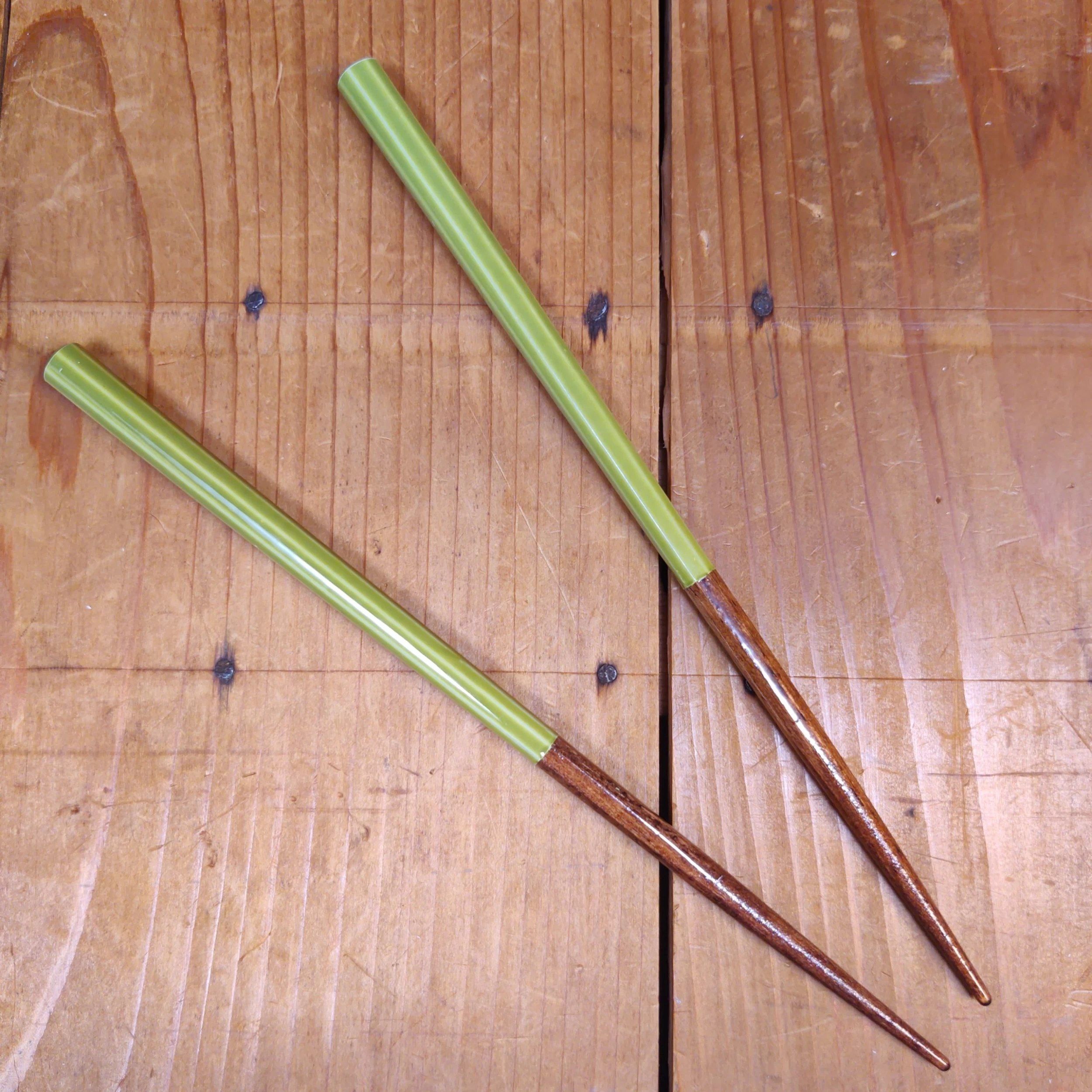 Made from Kelampayan (aeolamarckia cadamba), a fast-growing light tropical hardwood native to Malaysia. They feature octagonal facets and are available in in four different colors. These are shorter and easier to use for smaller hands or the less dextrous. Also great for lunch and travel utensil kits.