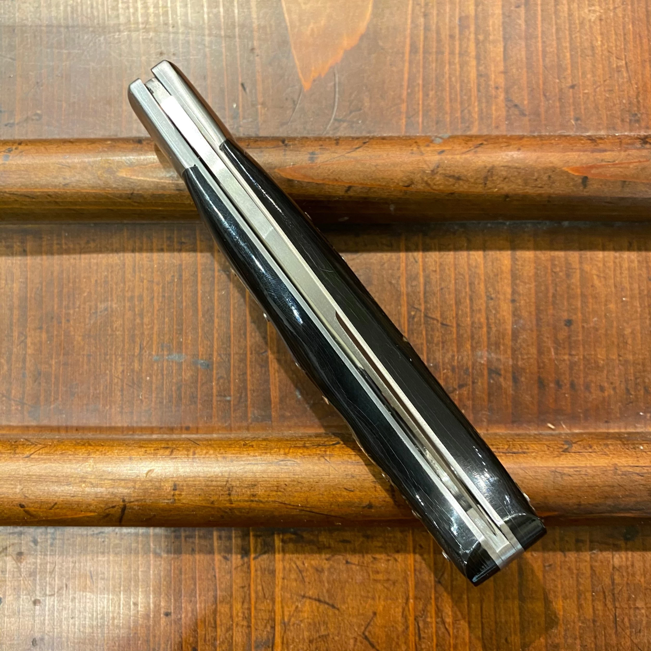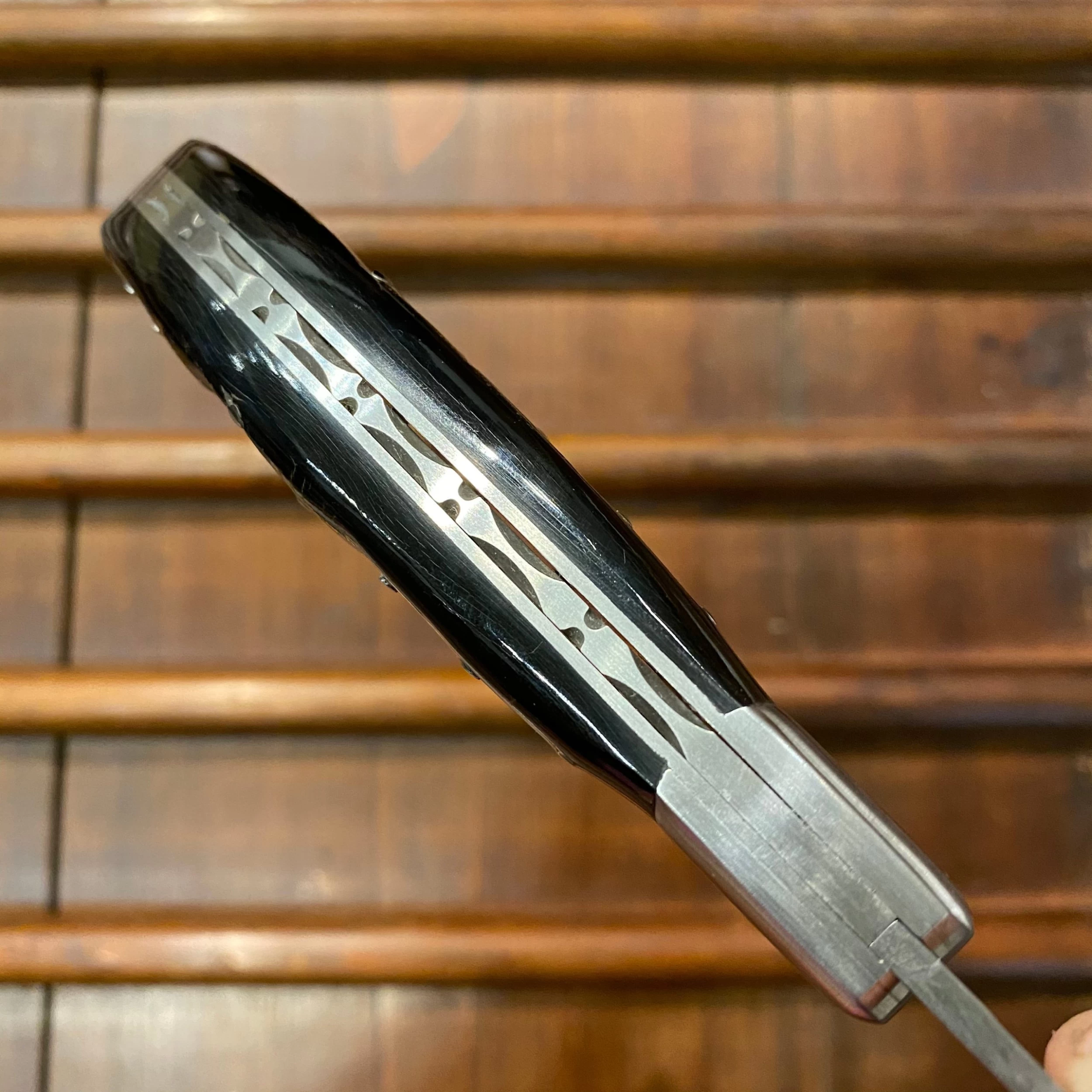 Hand made in France by Fontenille Pataud featuring a stainless blade, stainless bolster and hand filed spring. Handle is hafted in buffalo bark with stainless rivets.