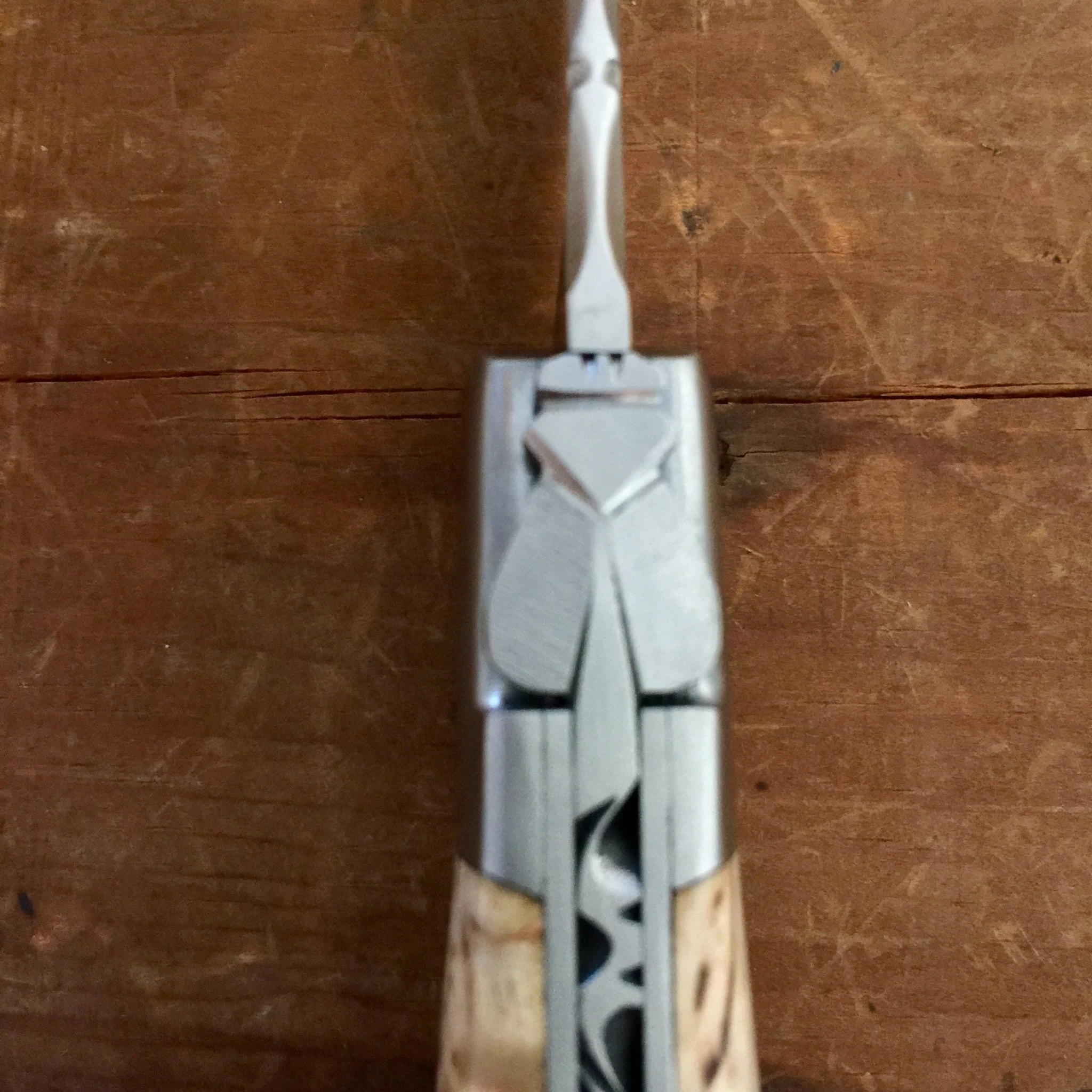 The Laguiole knife has a distinctive design influenced by the Spanish Navaja. A smaller, more tactile version was made for the sheep-herders on the Aubrac plateau in France, and was named after the town Laguiole. In addition to the iconic ‘bee’ or ‘fly’ on the spring, typically they feature a semi yataghan shaped blade, a slip joint mechanism with a slim tapered handle made from natural material, traditionally cow horn.