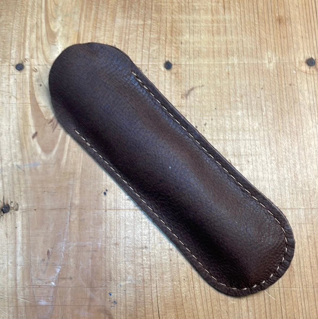The Laguiole knife has a distinctive design influenced by the Spanish Navaja. A smaller, more tactile version was made for the sheep-herders on the Aubrac plateau in France, and was named after the town Laguiole. In addition to the iconic ‘bee’ or ‘fly’ on the spring, typically they feature a semi yataghan shaped blade, a slip joint mechanism with a slim tapered handle made from natural material, traditionally cow horn.