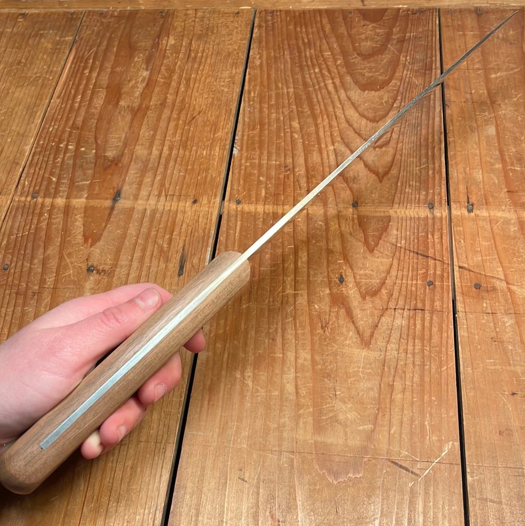 Friedr. Herder Abr Sohn company is the longest continually operating knife making operation in Solingen Germany. It’s famous Pikas spade logo was registered in 1727 although their place in Solingen’s blade making traces further back. Friedr Herder has kept many old patterns in carbon steel in production and offers a variety of new production knives for professionals and home cooks. We are happy to include these in our lineup. When looking for old knives seeing that Herder handle with the spade rivet peeking out is always exciting, we think it’s still true of the new production knives as well.