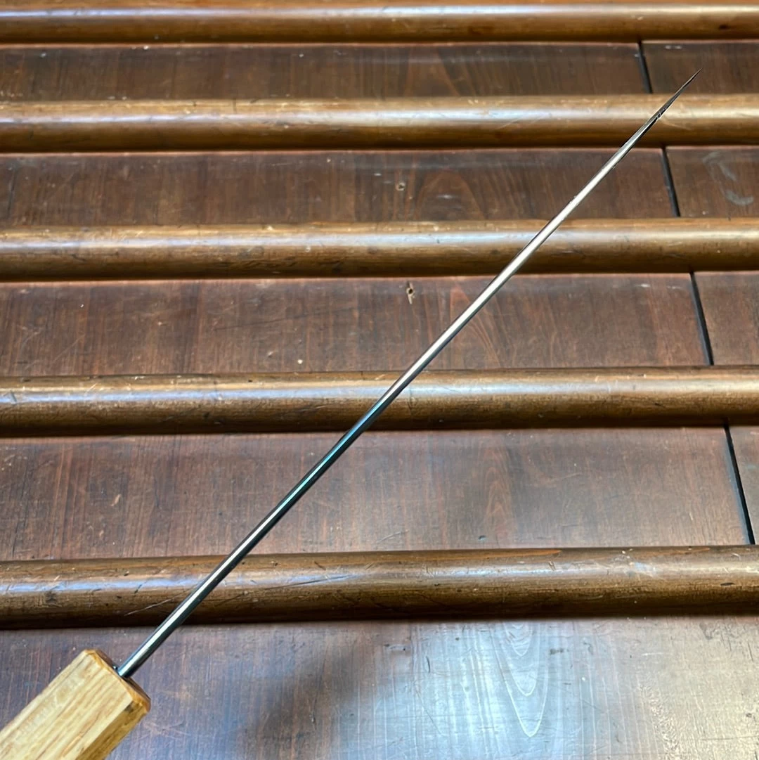 Blade is hand forged shirogami #2 with a rustic style kurouchi finished soft iron cladding. Handle is octagonal burnt oak sealed with a thin clear urushi lacquer coating.