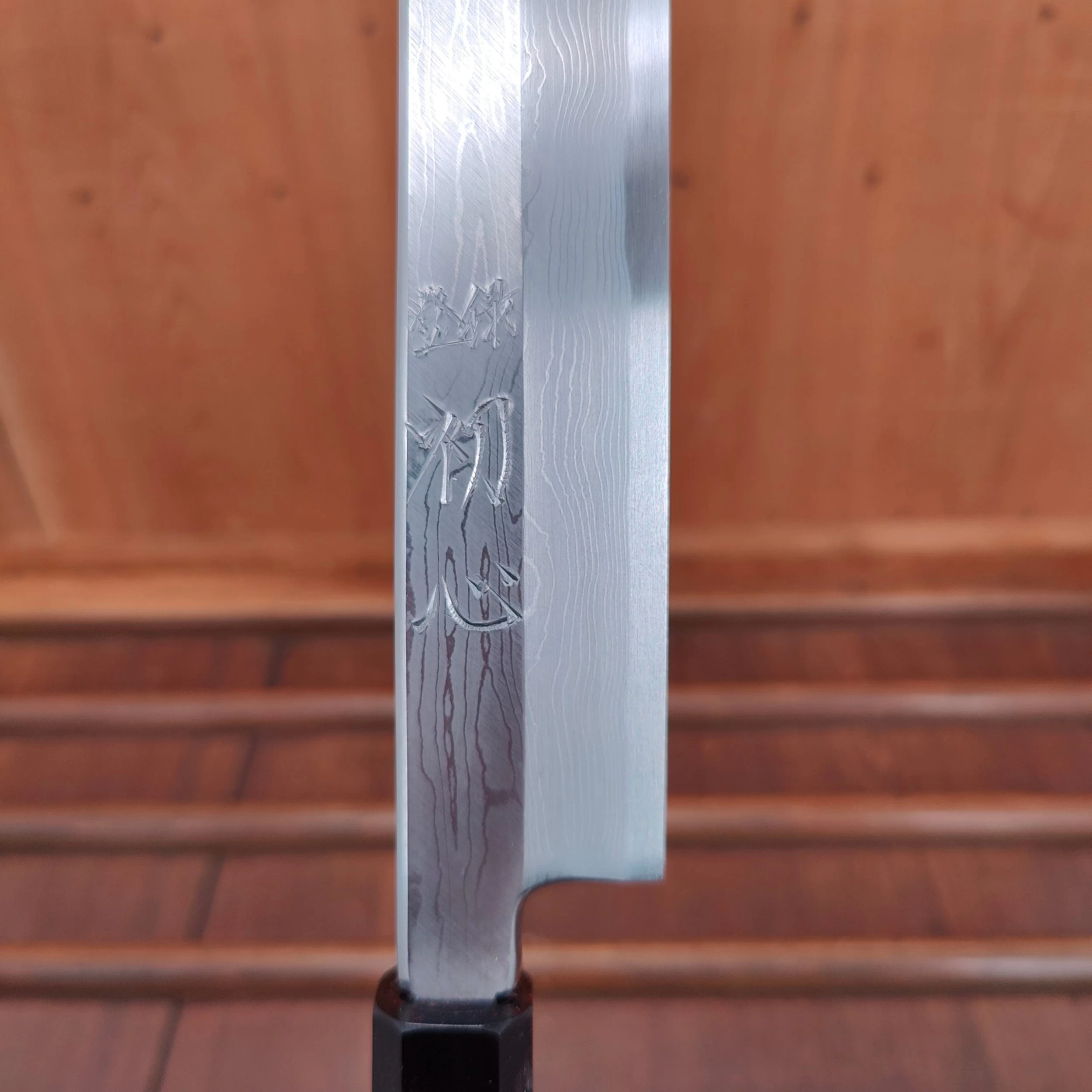 The sharpener on this series is credited as Kawakita Hamono operated by Kazumi Kawakita. Kawaita-san is a famed master sharpener who lists many notable and well-respected Sakai sharpeners as former students. Notably Morihiro who pioneered putting traditional Sakai wide bevels on double bevel wa-hochos. He was the sole sharpener of the Konosuke Fujiyama line (until 2018) and also works on the Sakai Kikumori Choyo series as well as a credited grinder for Nakagawa and other projects from Sakai.