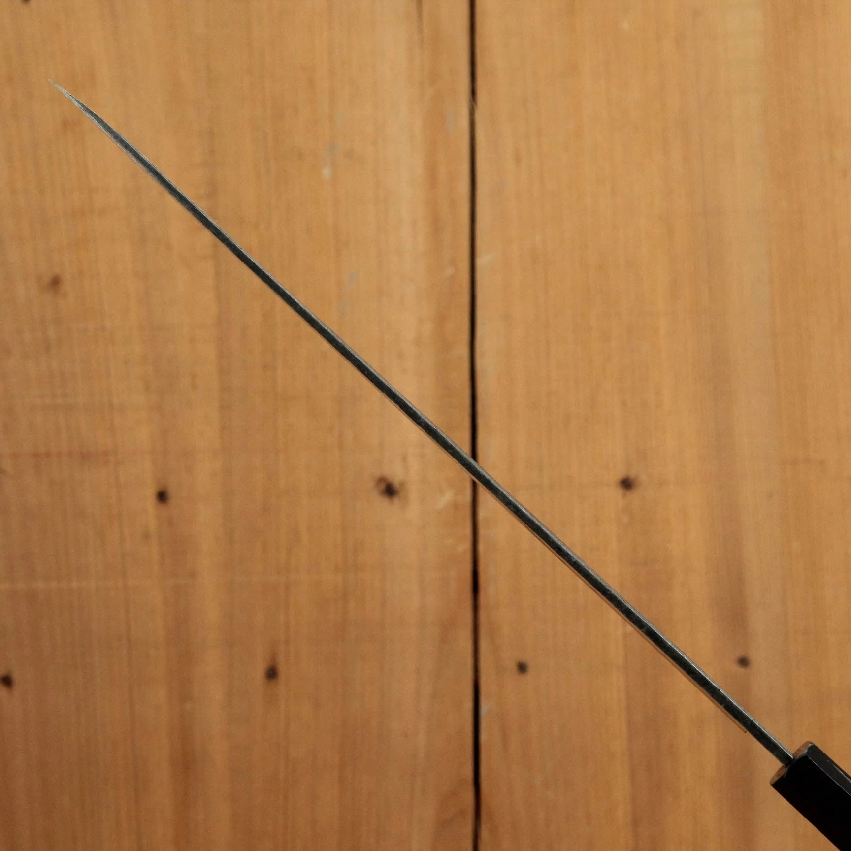 Forged in the Ni-Mai style, a specialized double forging technique that applies soft cladding only to the cutting side of the knife. This technique is not common to the Tosa region.
