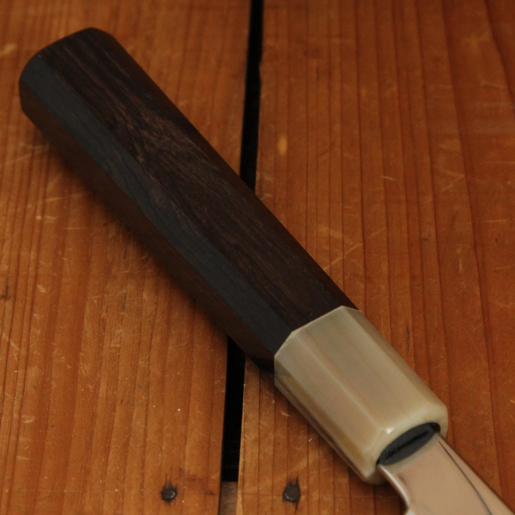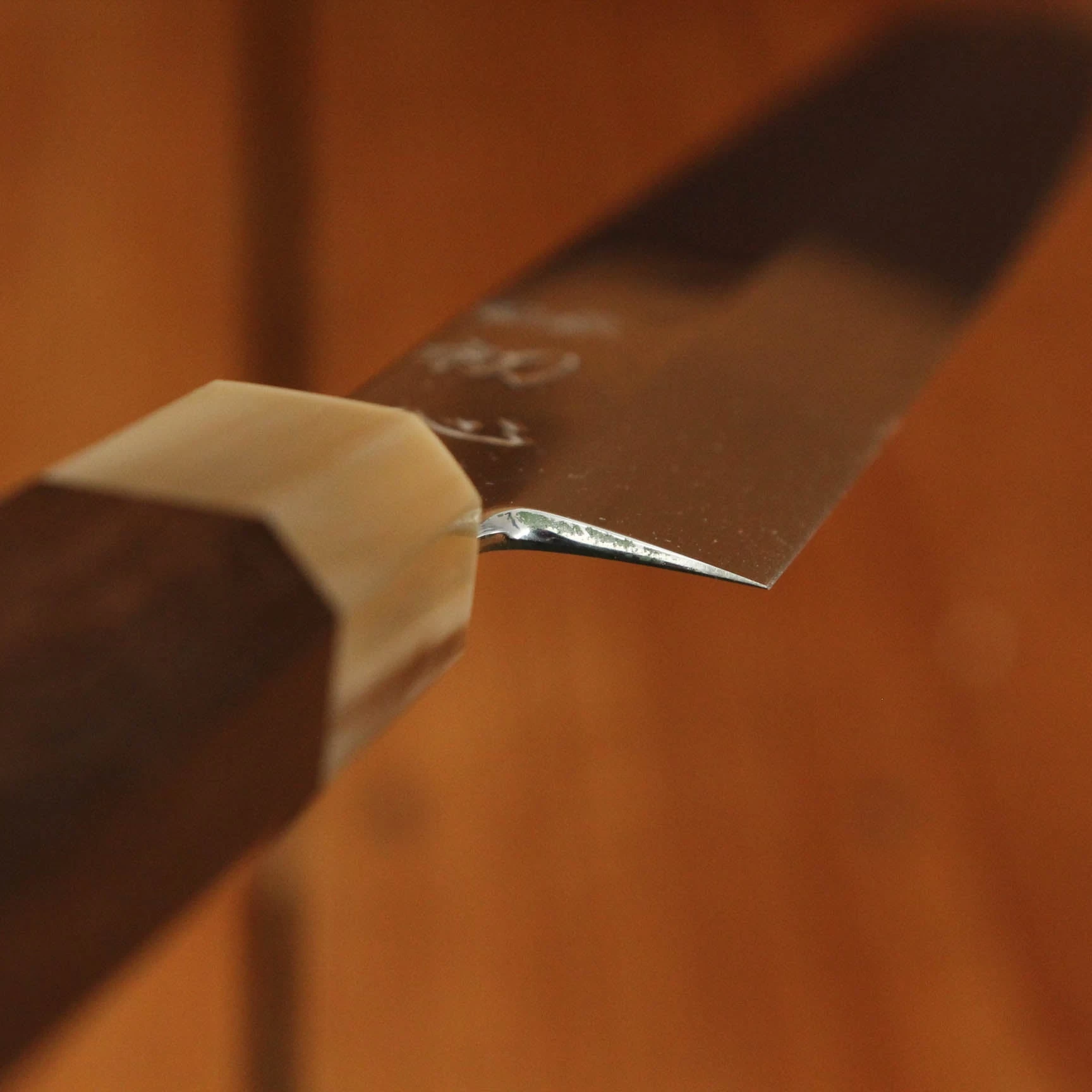 Nakagawa-san’s knives are characterized by excellent heat control during forging and a very thorough heat treatment creating knives that have superb edge formation and edge life with good toughness.