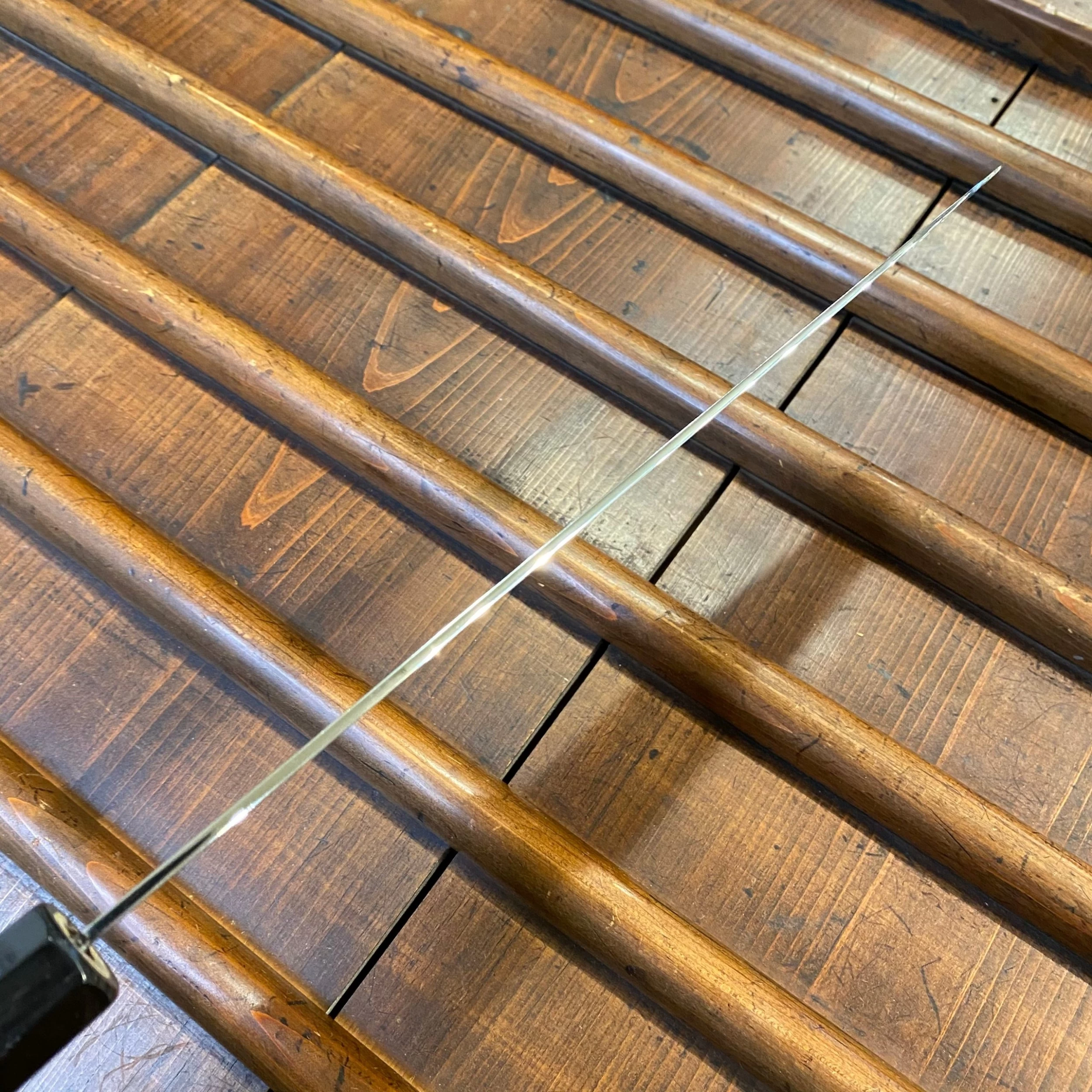 Hand ground VG10 mono steel with a nice taper and convex hamaguri grind. This fine grind makes for smooth cutting and excellent food release with a long edge life and excellent stainless property. VG10 can be more work to sharpen as they get sharpened down but that will take quite some time as the thin convex grind keeps the blade thin as it gets sharpened in.