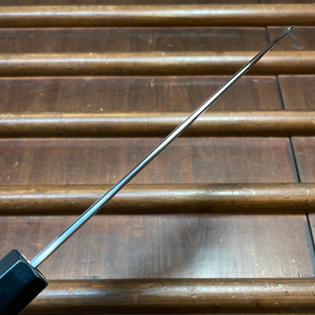 Hand forged in Sakai and ground by a young sharpener in Sakai. These knives come with an impressive lineage with the sharpener’s grandfather being one of a few knife makers who pioneered the wide bevel grinding on double bevel knives.