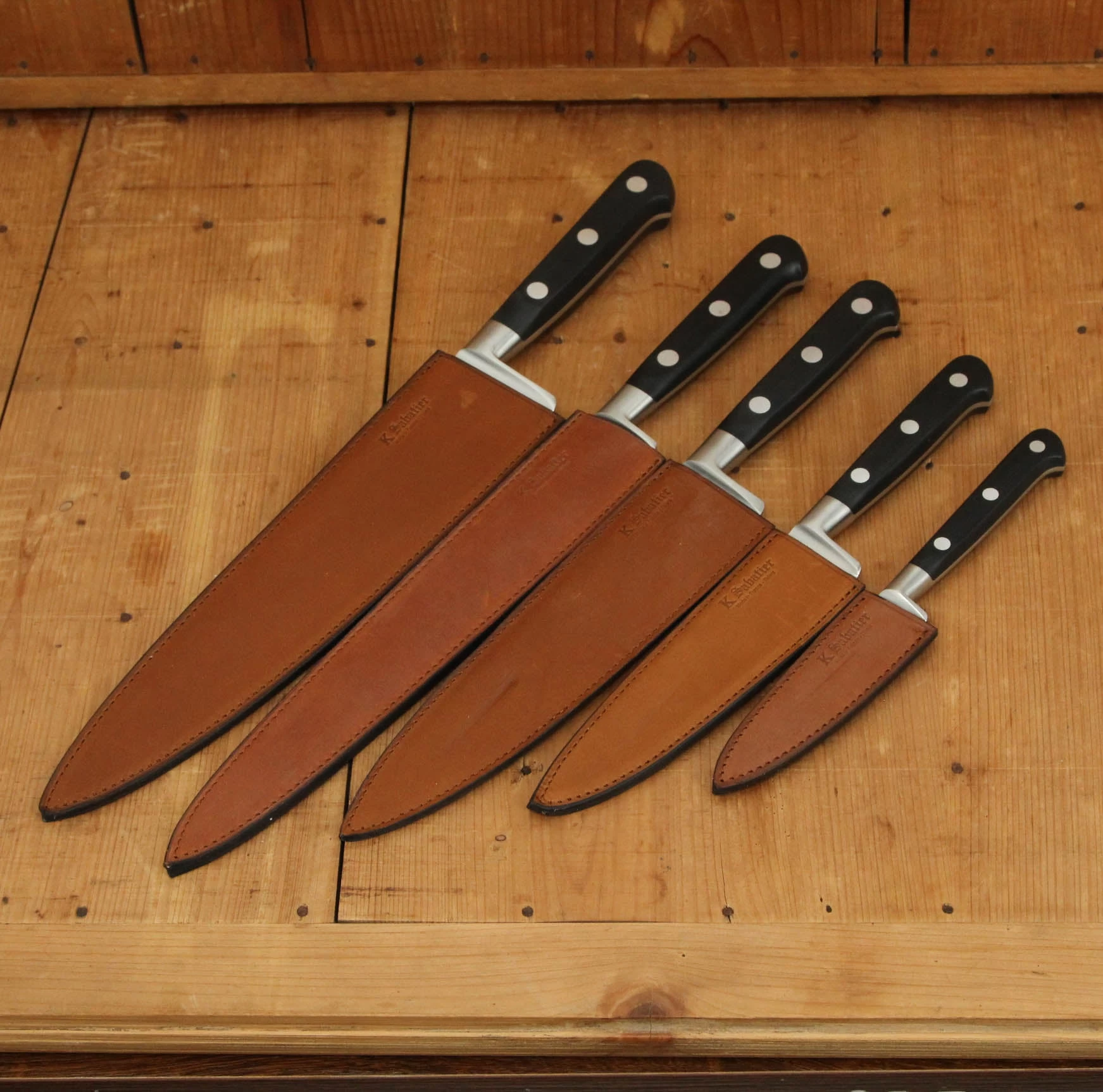 Forged in Thiers France, this complete set is the top shelf series from K Sabatier and is named for the date of the register of the K trademark. It features a cryogenically treated Z50C13 stainless steel, POM handle and handmade leather sleeve.