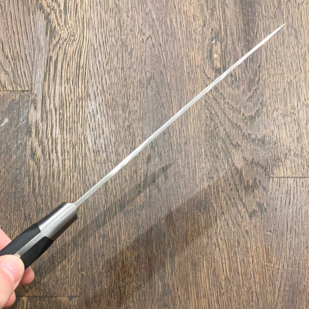 The deep freeze treatment gives this steel increased stainlessness, flexibility, toughness and edge life, thereby increasing its ability to be thin ground. This series has a lighter weight, sleeker cutting feel and better edge life than the standard stainless series from K Sabatier.