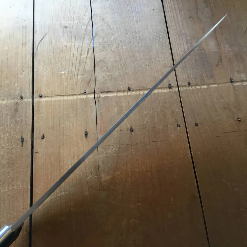 K Sabatier ‘Authentique’ series 14″ chef knife. Stainless steel blade with riveted black POM handle.