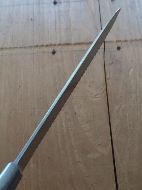 K Sabatier ‘Authentique’ series 5″ serrated tomato knife. Stainless steel blade with riveted black POM handle.