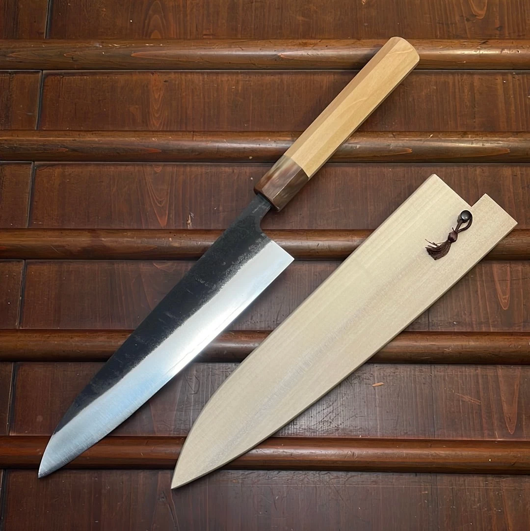 Hand forged and hand ground in Fukushima for Konosuke by Takahiro Nihei. Excellent forging, heat treatment and finish with a classic robust feel. With saya.