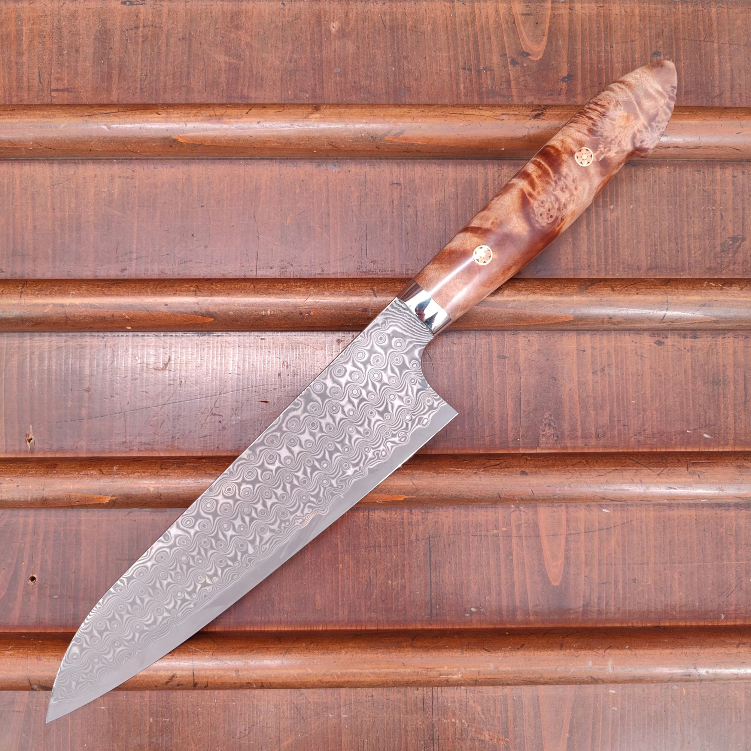 Be the first to review “Nigara Hamono SG2 210mm Gyuto Damascus Stabilized Maple Burl Western Handle” Cancel reply