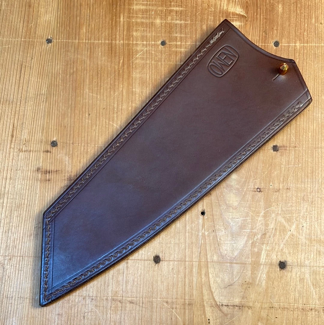 Mid brown Italian vegetable tanned leather sheath for Blenheim Forge Classic Range Bunka handcrafted by Harry Owen of Owen Leather in Peckham London.