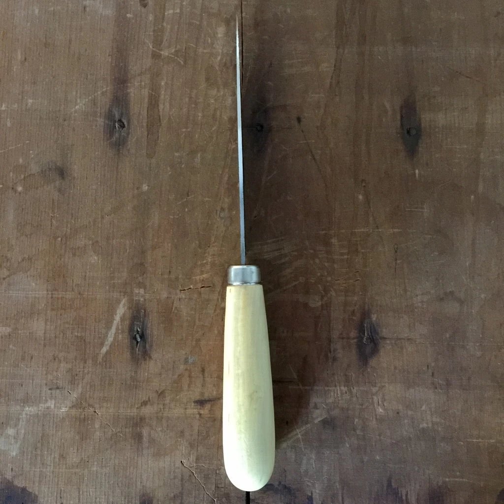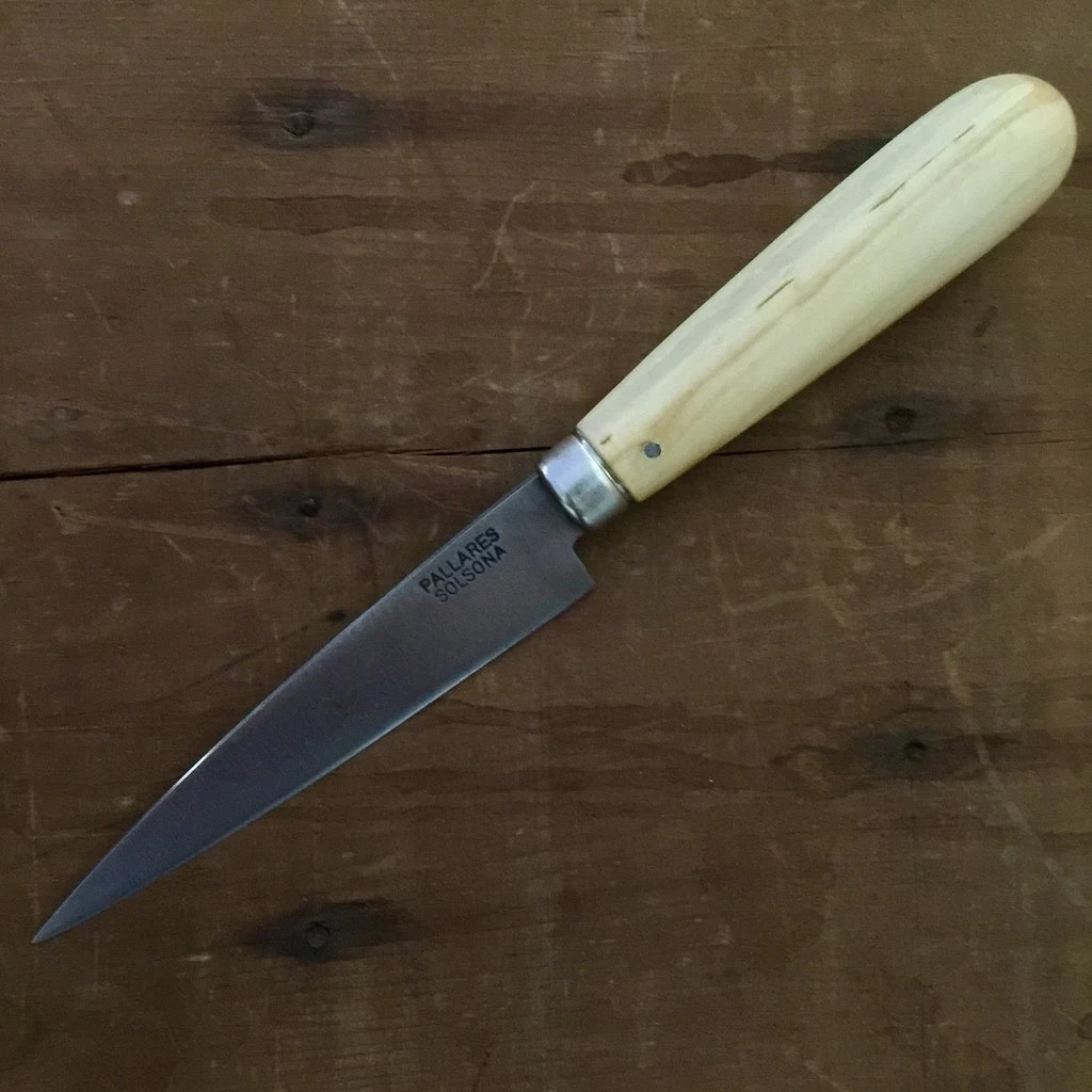 Pallares 4″ pointed paring knife. Carbon steel blade with durable boxwood handle. Handmade in Solsona, Spain.