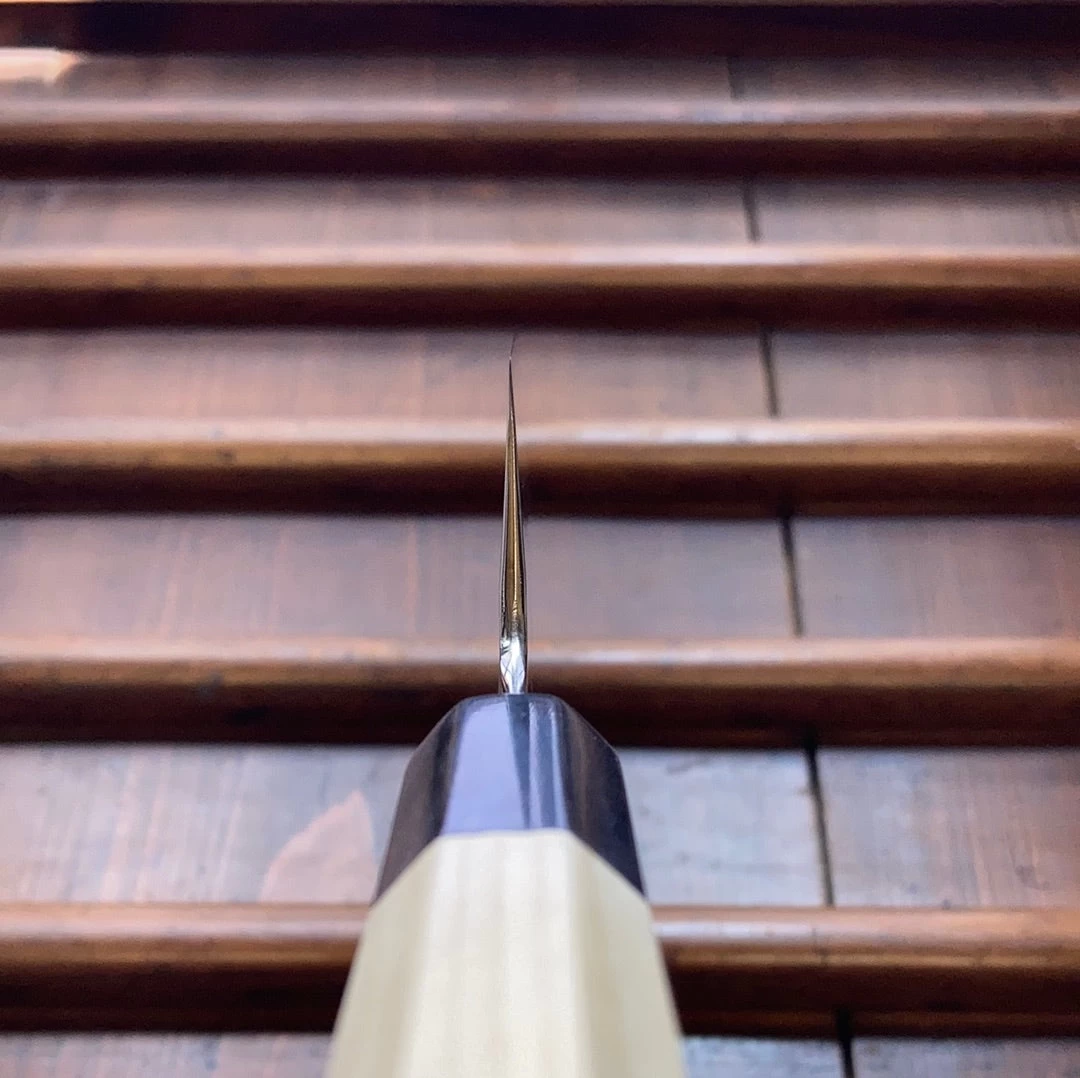 The ginsanko knives in the Choyo series are forged by Nakagawa Hamono (previously Shiraki Hamono). Nakagawa-san’s top level forging and heat treatments make for an exceptional ease of sharpening and superb edge life.