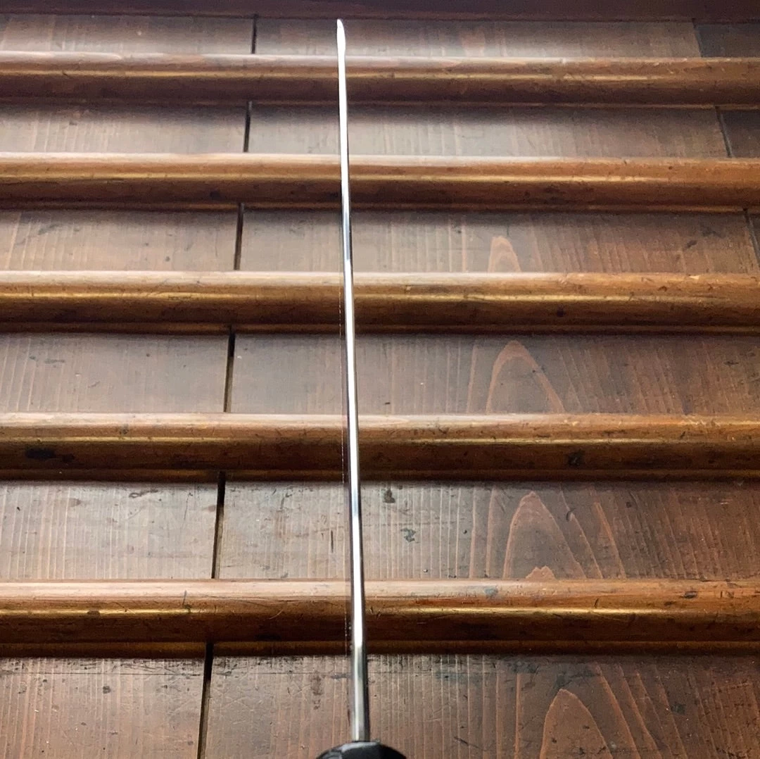 Choyo grinder and polisher is Morihiro Hamono. Morihiro-san’s grinding is superb; he pioneered this type of low kiriba grind on wa-gyuto. The characteristic result of this grinding and polishing are the even, wide bevels, chamfered spine and brilliant mirror polish.