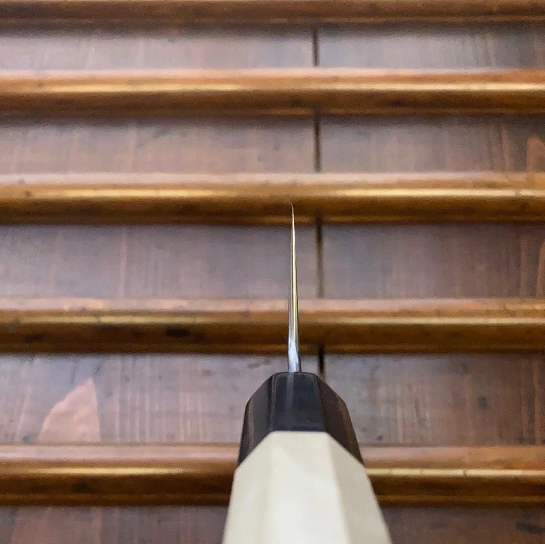 Kikuzuki Kasumi blacksmiths are from Tanaka Hamono. Tanaka-san’s top level forging and heat treatments make for an unusual ease of sharpening and superb edge life and toughness.