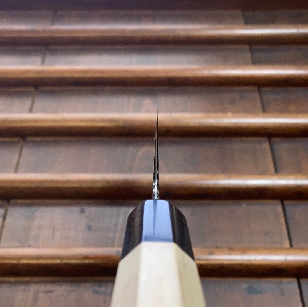 Kikuzuki Uzu and Kasumi blacksmiths are from Tanaka Hamono. Tanaka-san’s top level forging and heat treatments make for an unusual ease of sharpening and superb edge life and toughness.
