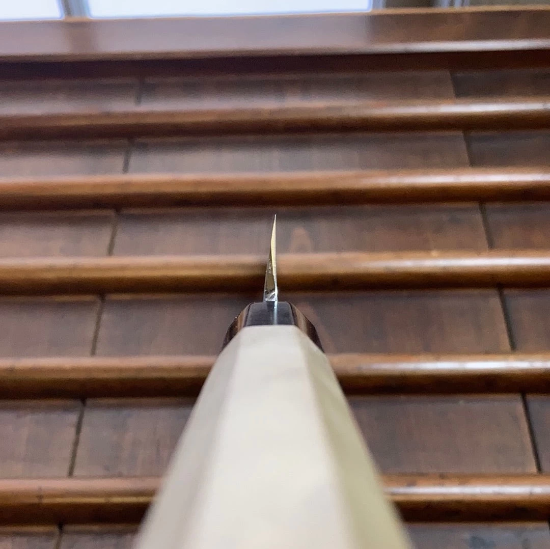 Kikuzuki Uzu and Kasumi blacksmiths are from Tanaka Hamono. Tanaka-san’s top level forging and heat treatments make for an unusual ease of sharpening and superb edge life and toughness.