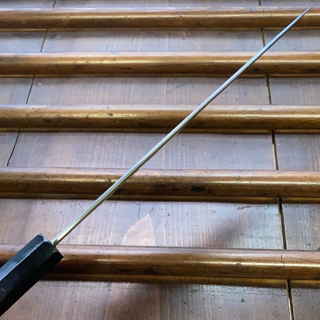 Sakai Kikumori ‘So-Ten’ 210mm Gyuto in Aogami Super. Octagonal ebony wood and water buffalo ferrule handle. Comes with saya.