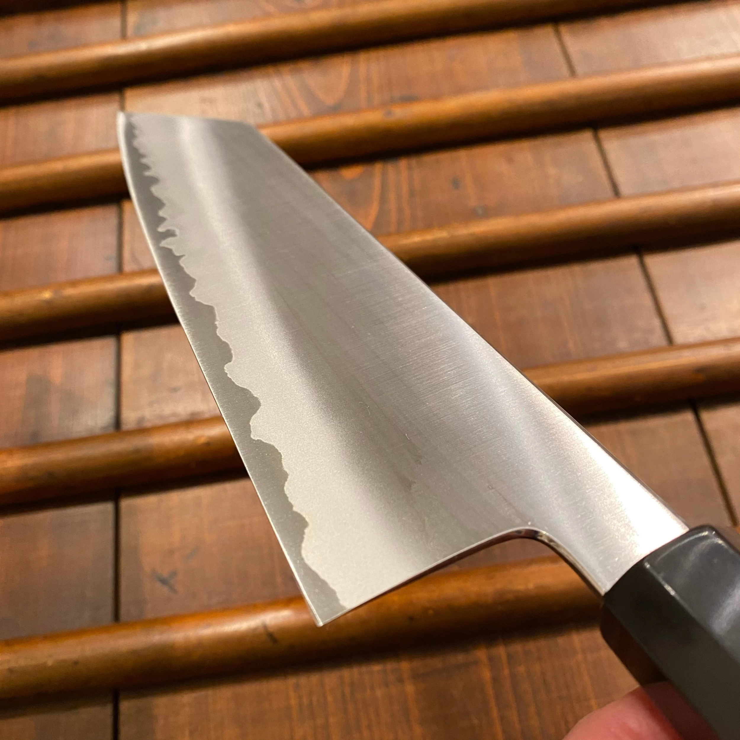 Yugiri blacksmiths are from Tanaka Hamono. Tanaka-san’s top level forging and heat treatments make for an unusual ease of sharpening and superb edge life and toughness.