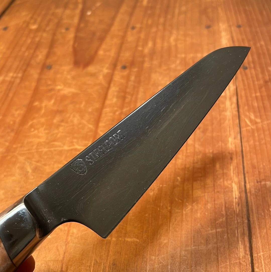 After testing the Steelport 8” chef, we found it has the more robust weight and balance of a Western chef knife with excellent performance. It’s an easy, punchy feeling knife with a smooth cutting feel with good food release from it’s convex face. This knife was very easy to sharpen and worked well with a wide variety of finish types; from 3000 to 8000 grit (I thought 4-6K to be the sweet spot).