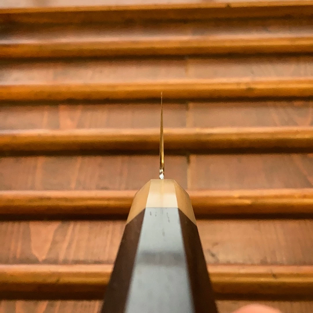 Mitsuaki Takada has spent many years as a grinder in Sakai and specializes in double bevel hamaguri style convex grinding. He worked for Ashi Hamono for many years, and is very skilled at grinding thin double bevel knives with excellent cutting feel.