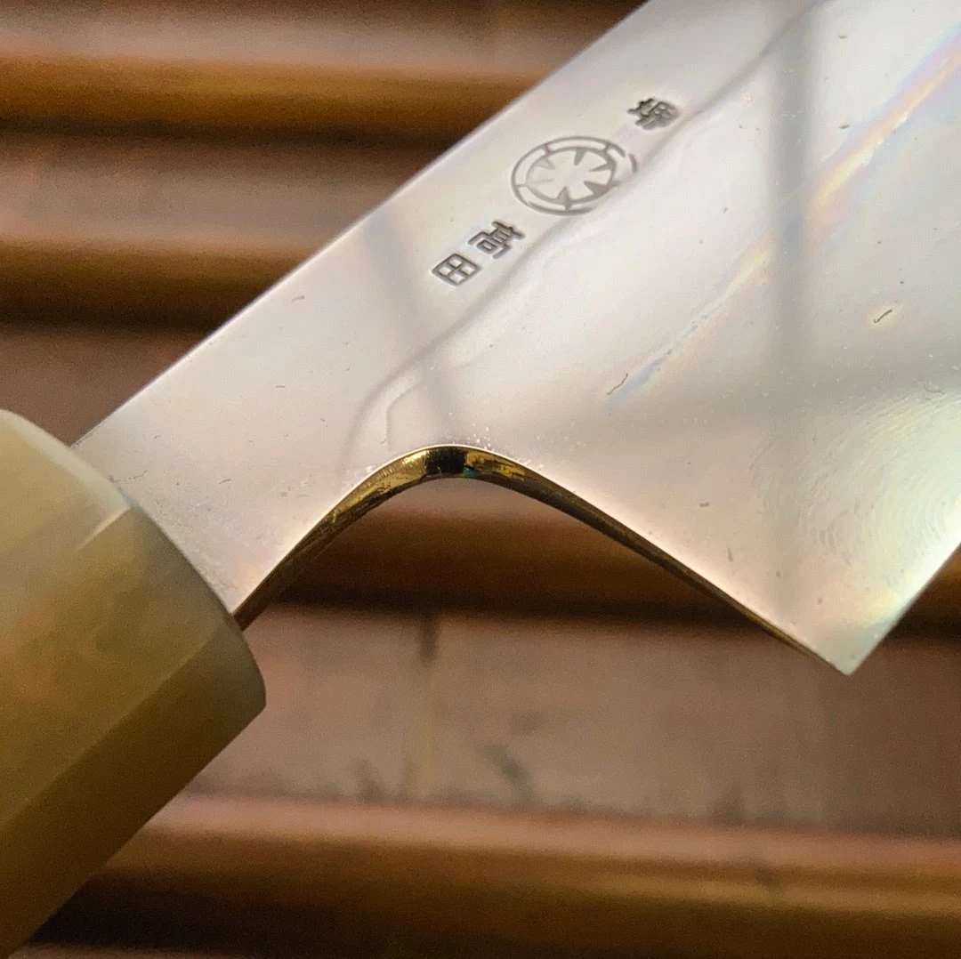 They have fine cutting feel with excellent edge life and edge formation, and represent an exciting new generation of Sakai craftsmen putting out top quality work. We are super excited to be working with Takada no Hamono. Shiraki Hamono water quenched honyaki is superb, tough, nice to sharpen and with great edge life.