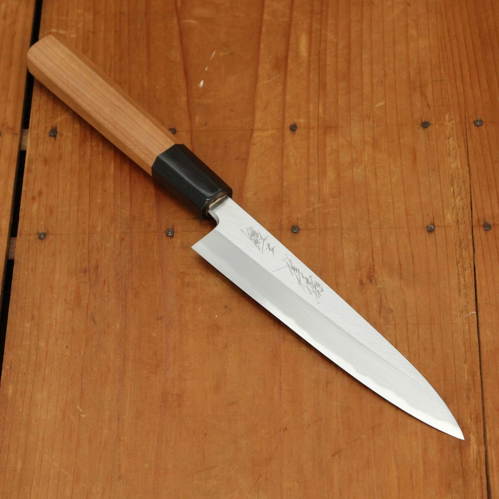 This knife is hand forged in Sakai by dentoukougeishi blacksmith Yoshikazu Tanaka and hand ground by Masaya Shimizu also in Sakai.