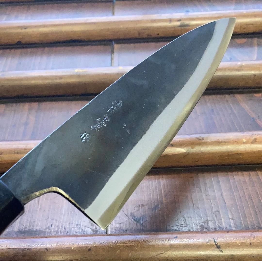 Hand forged knives from the Tosa area of Shikoku Island, Japan’s least populated island with a long history of smithing. Shikoku’s thick forests, agriculture and fisheries have led to a local style of smithing that is characterized by rustic free forged knives and tools. Many Tosa knives are ryoba style; forged and ground symmetrically and are suitable for both right and left hand users.