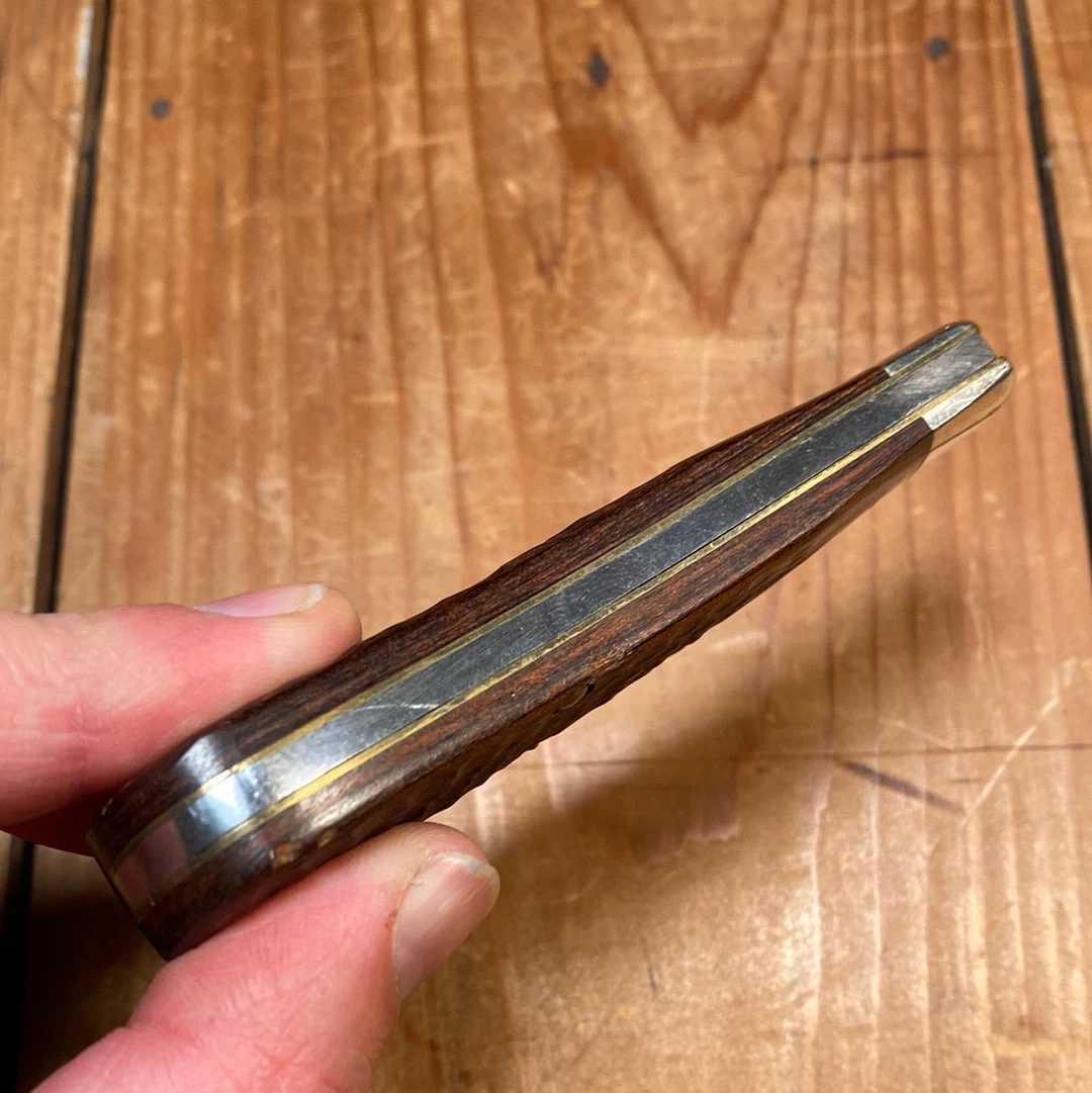 Rebranded ‘ace Pruner’ (1970’s/80’s Schrade??) with carbon steel blade, and jigged pakka wood hafts.