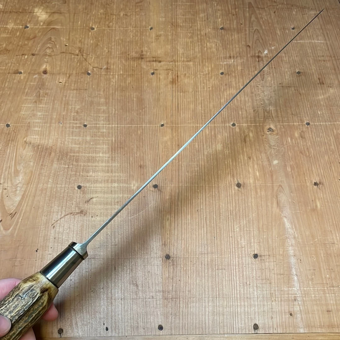 re-handled with a stag handle. A set of American made knives with stag re-handles was found in a large collection recently, they are a little bit of a mystery but are nicely done and are excellent late 19th to early 20th century blades. Certainly not factory production handles however.Â