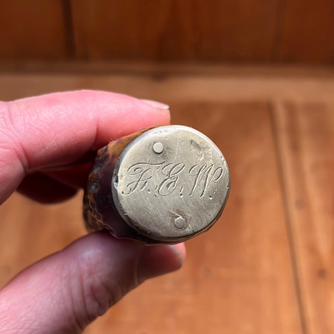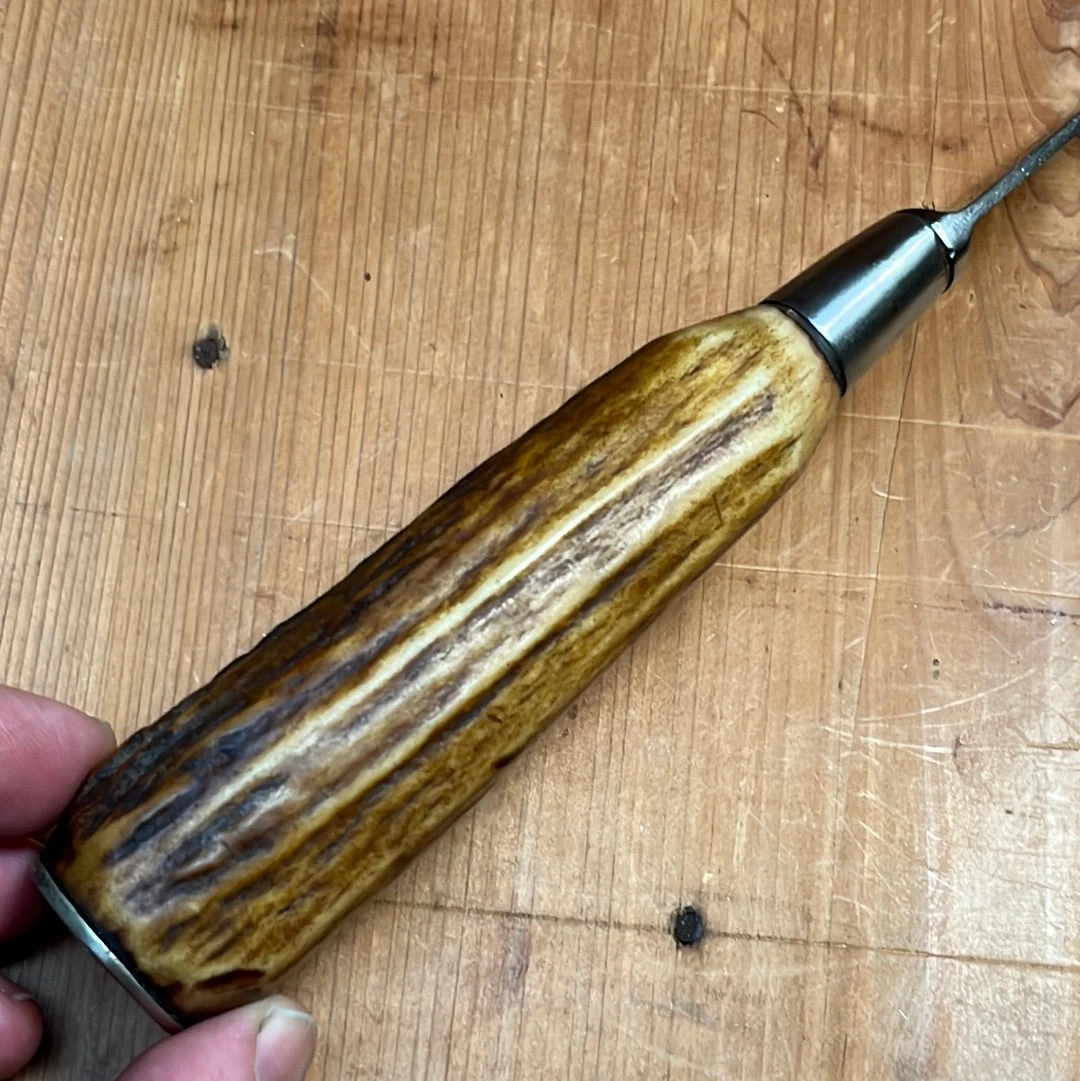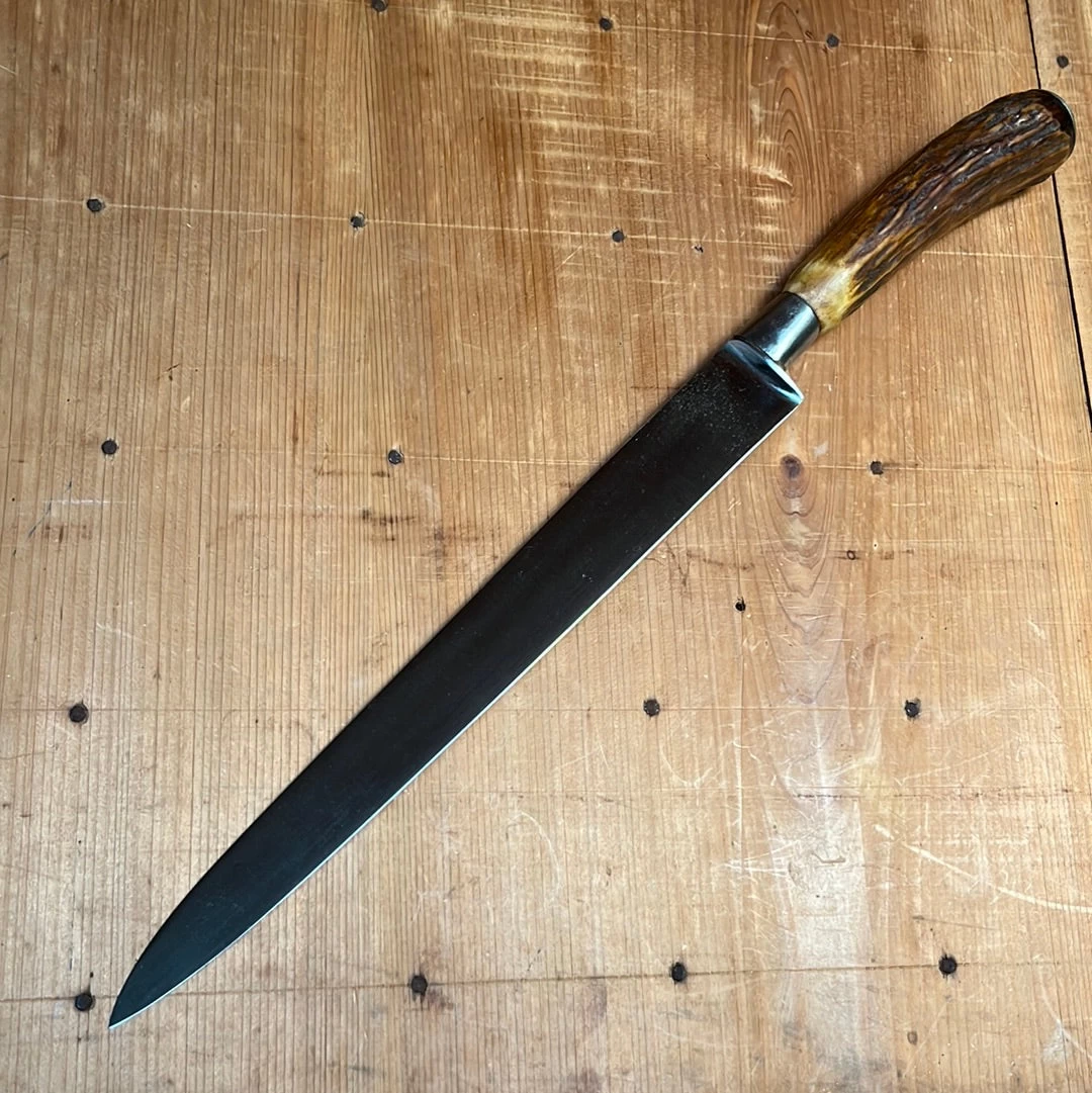re-handled with a stag handle. A set of American made knives with stag re-handles was found in a large collection recently, they are a little bit of a mystery but are nicely done and are excellent late 19th to early 20th century blades. Certainly not factory production handles however.Â