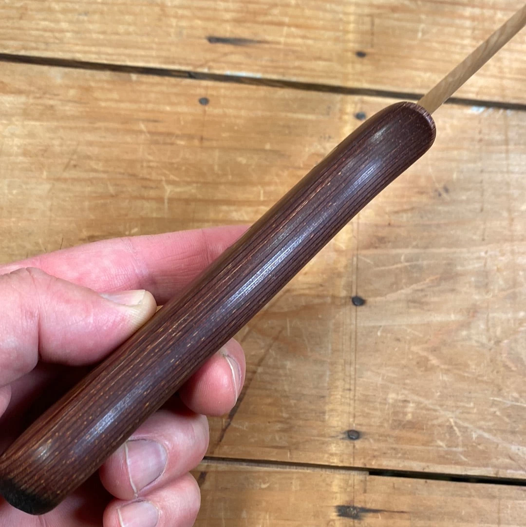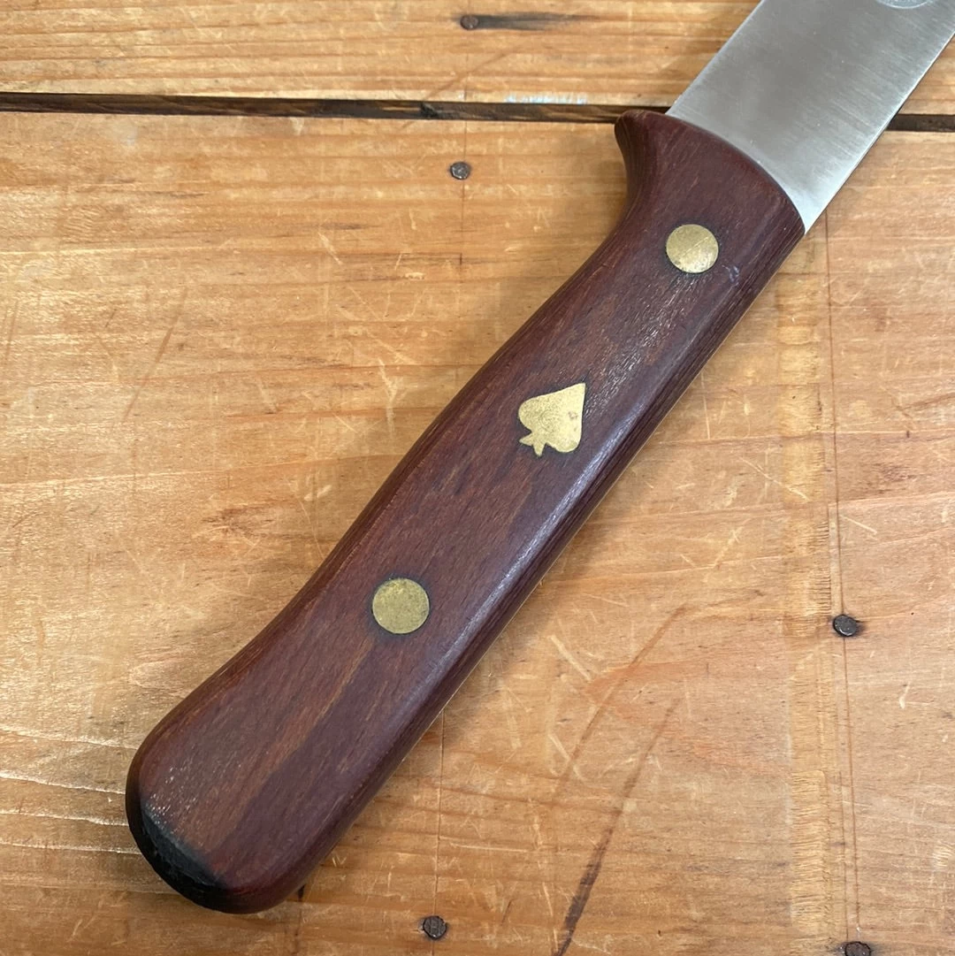 Vintage Friedr Herder Constant series hand ground stainless steel 9” slicer made around the 1960’s. These were an excellent hand ground thin convex faced stainless knife for their day and are great examples of mid century design. Stainless blade with pakka wood handle with famous spade rivet.