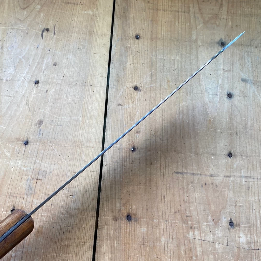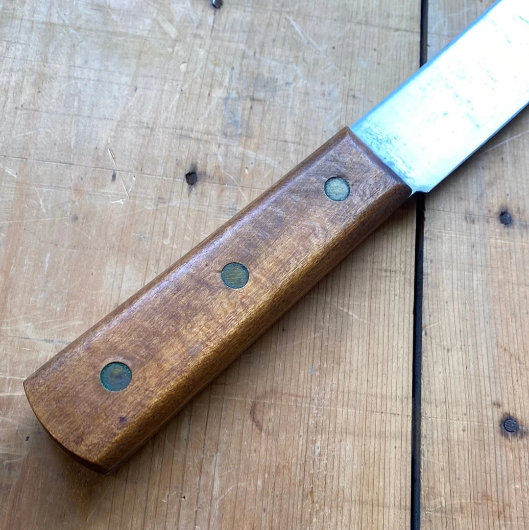 Made for the US Military and marked US Russell 1953, carbon steel blade is very full, brass riveted beech handle is nice and secure.