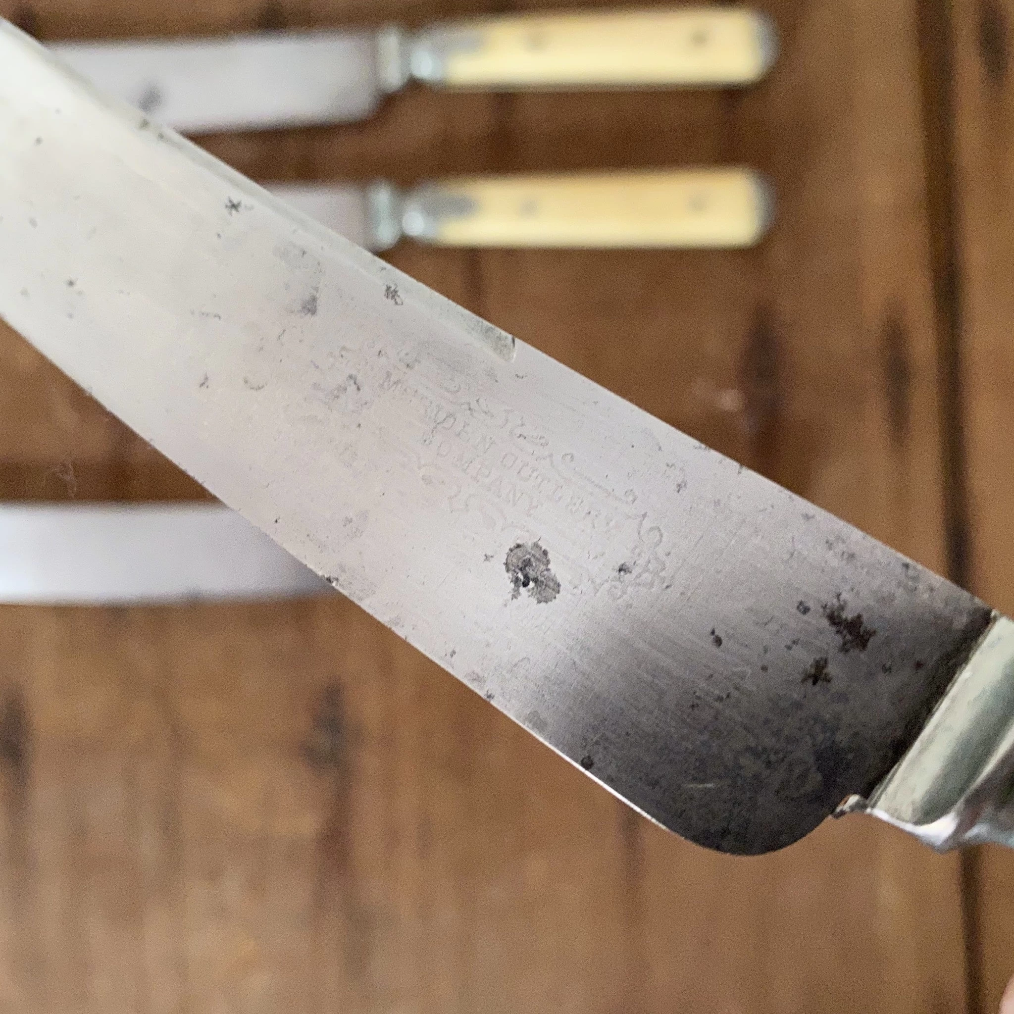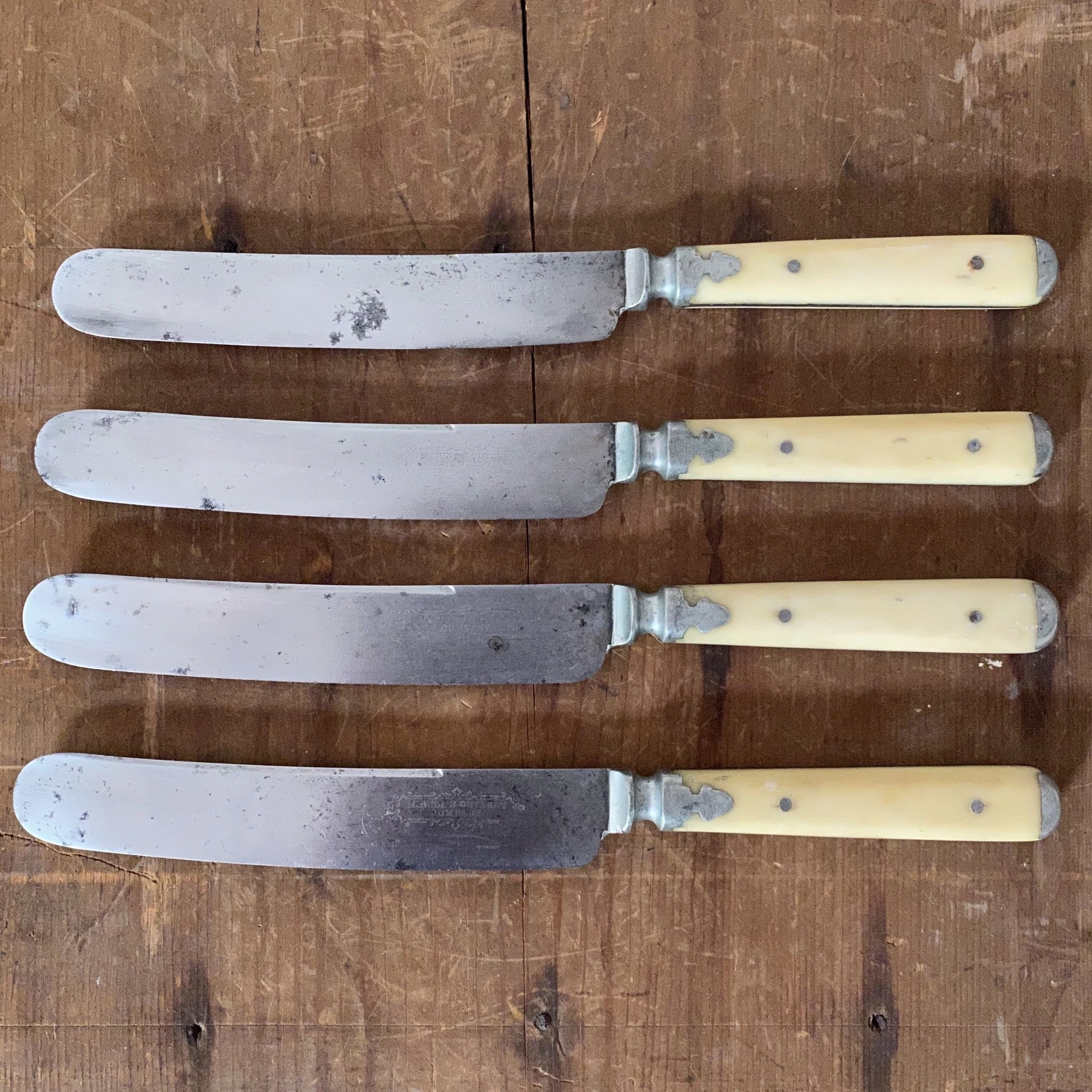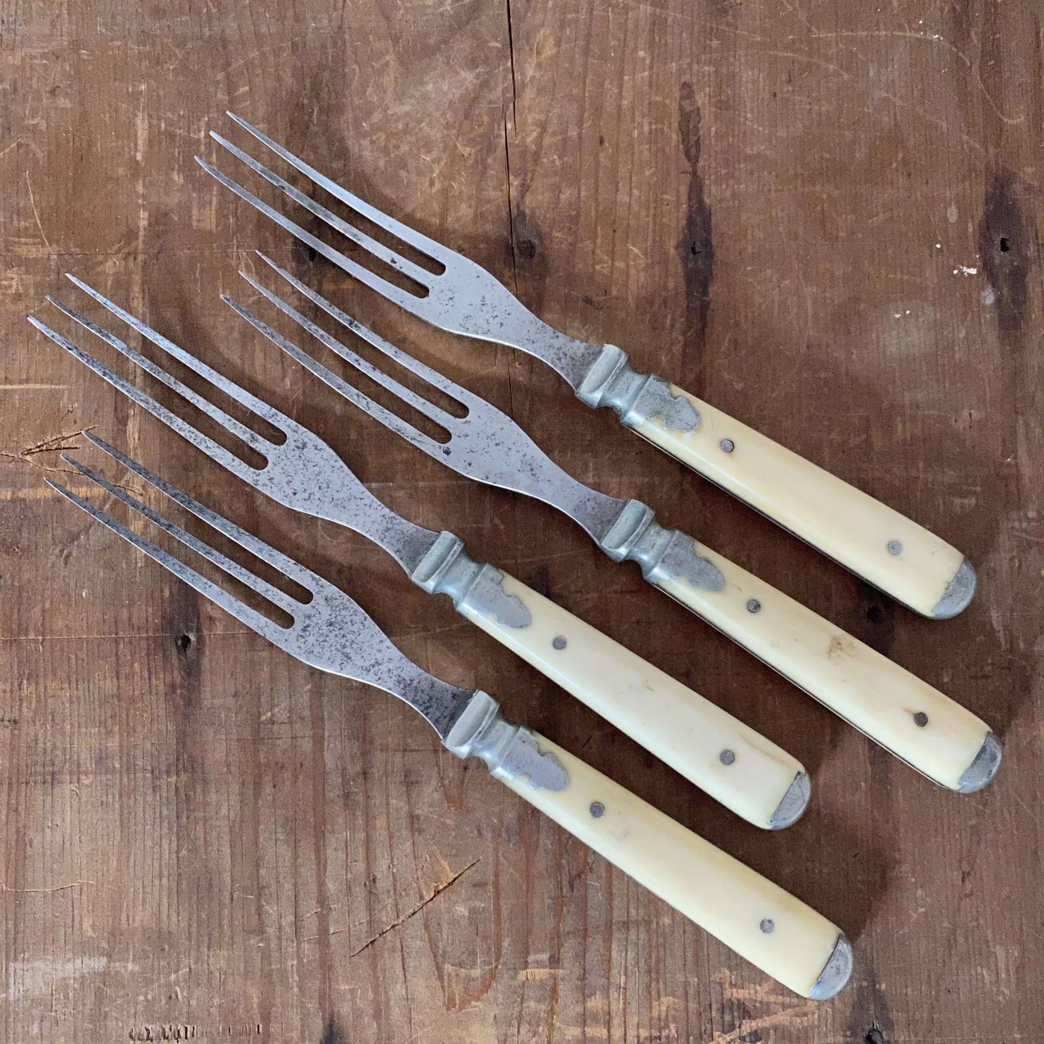 Vintage Meriden Cutlery Co Knife & Fork Set Of 4 Bone & Pewter 1855-1918 (these 1870’s?)