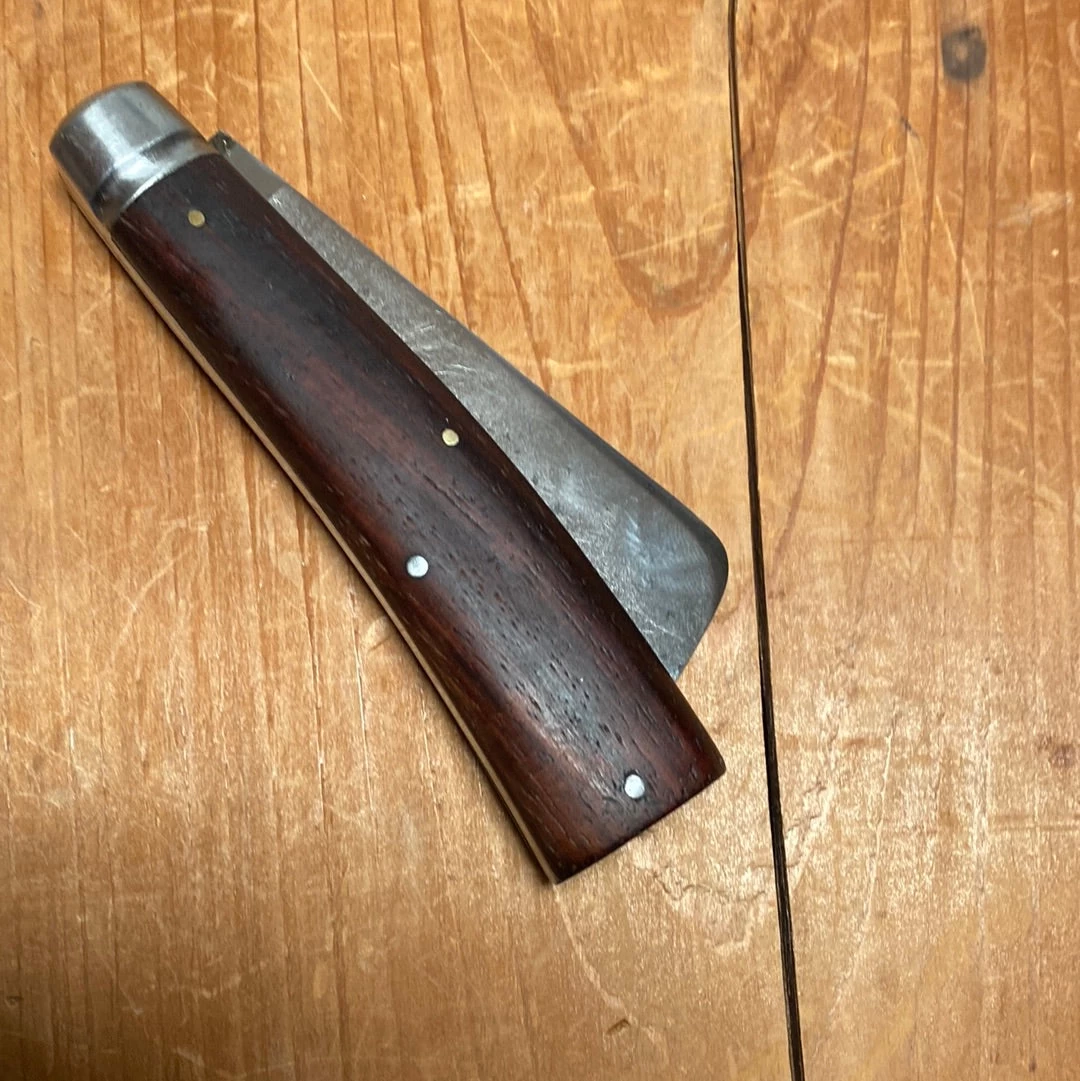 Carbon steel blade, ‘rat tail’ iron boslters (named for the groove that was cut with a rat tail file) and rosewood hafts.