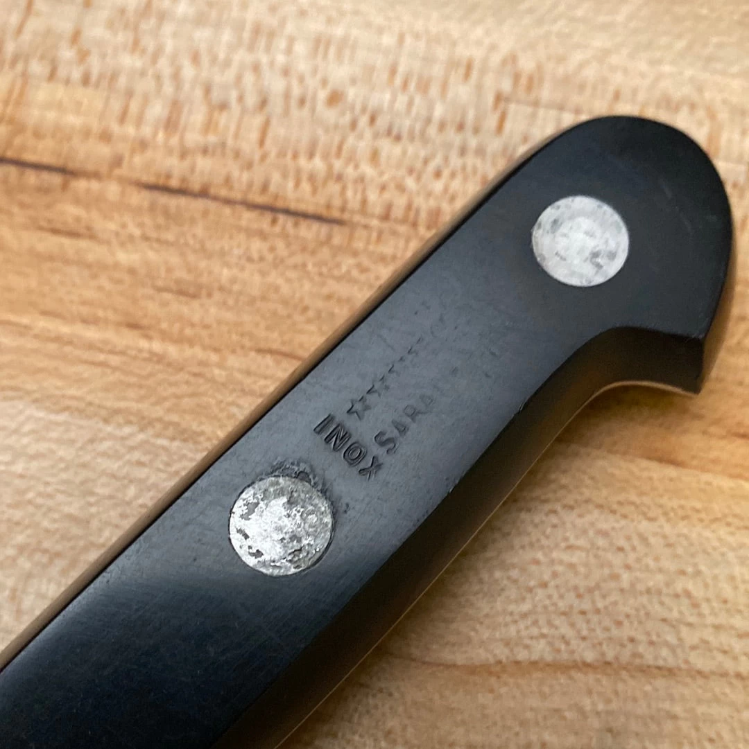 Thiers Issard 4 Star Elephant Sabatier stamped but hand ground stainless 8” chef knife POM handle with aluminum rivets likely made in the 70’s or 80’s.