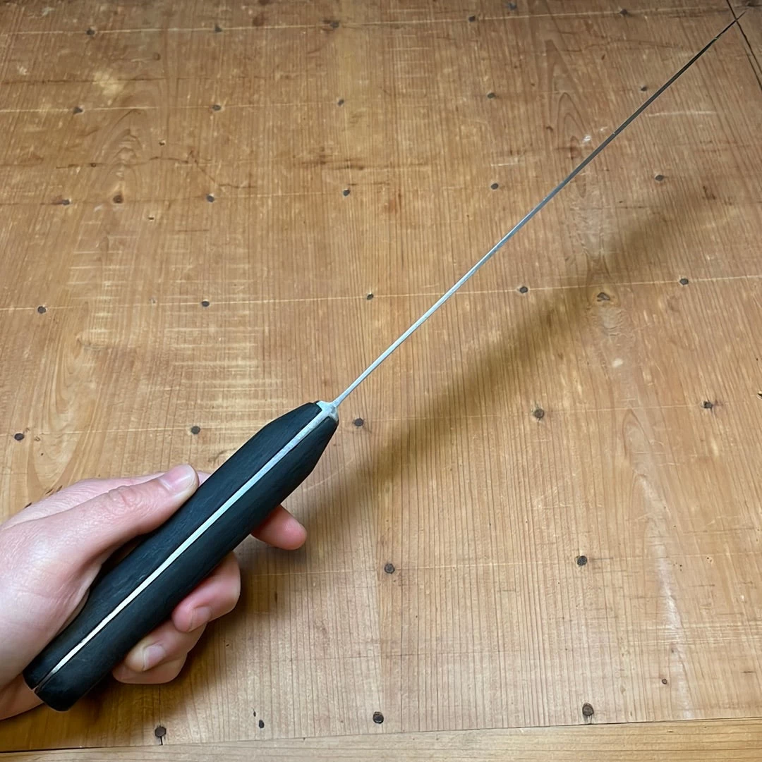 Marks lost (Sword & Shield export brand?) refurbished slicer, was found with thick sharpened in edge, is somwhat narrower than original but has been thinned and refurbished and will cut beautifully.